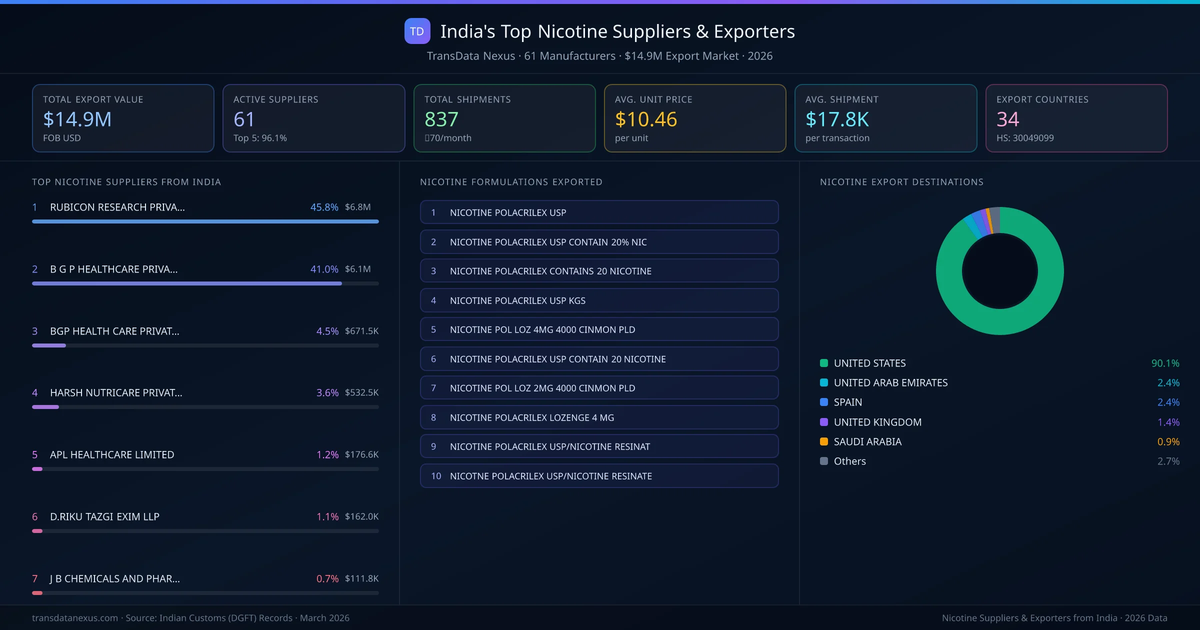 Who Exports Nicotine from India — 61 Suppliers Behind a $14.9M Market