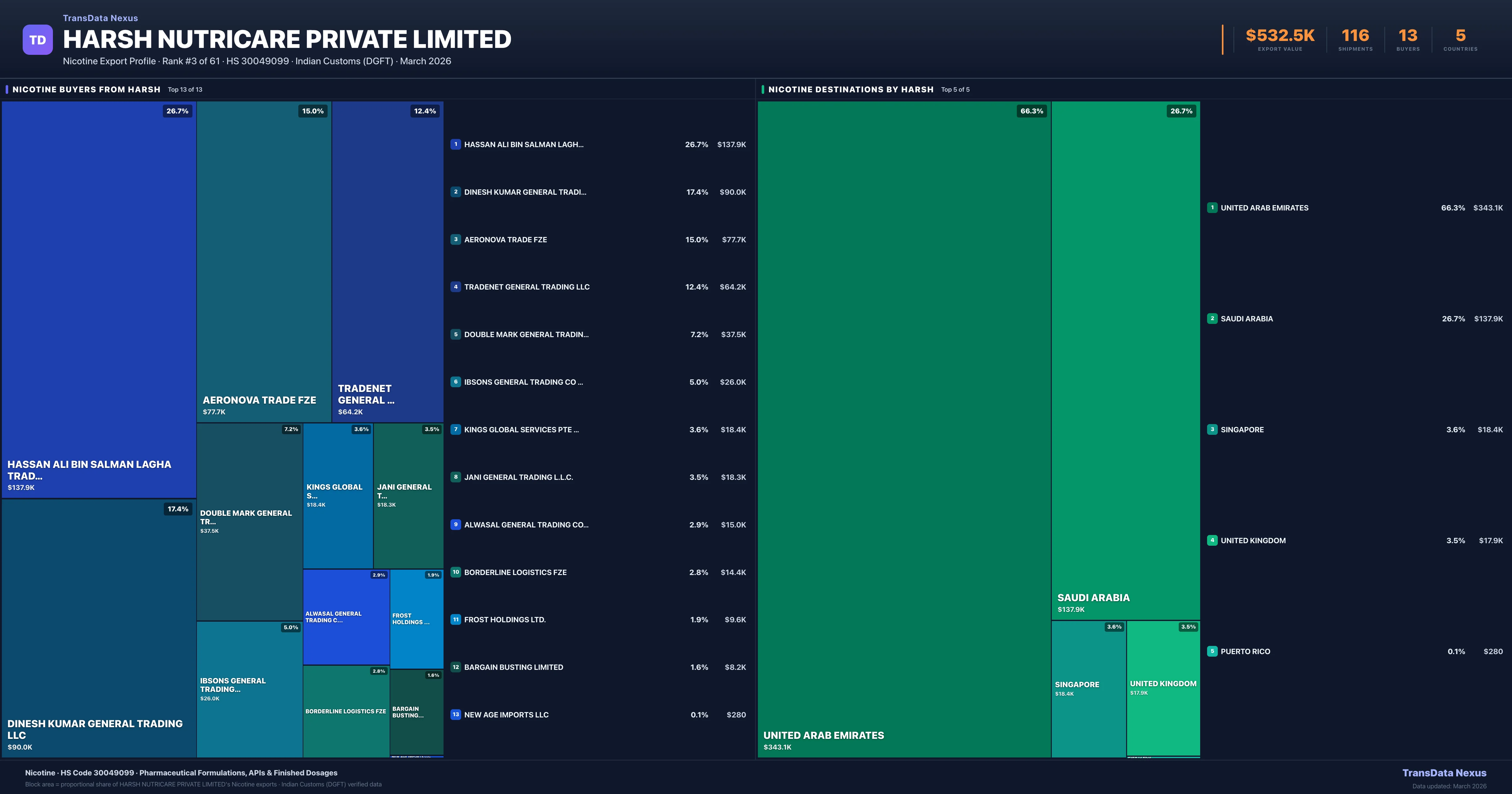 Harsh Nutricare Private Limited — Nicotine Export Profile: Buyers & Destinations