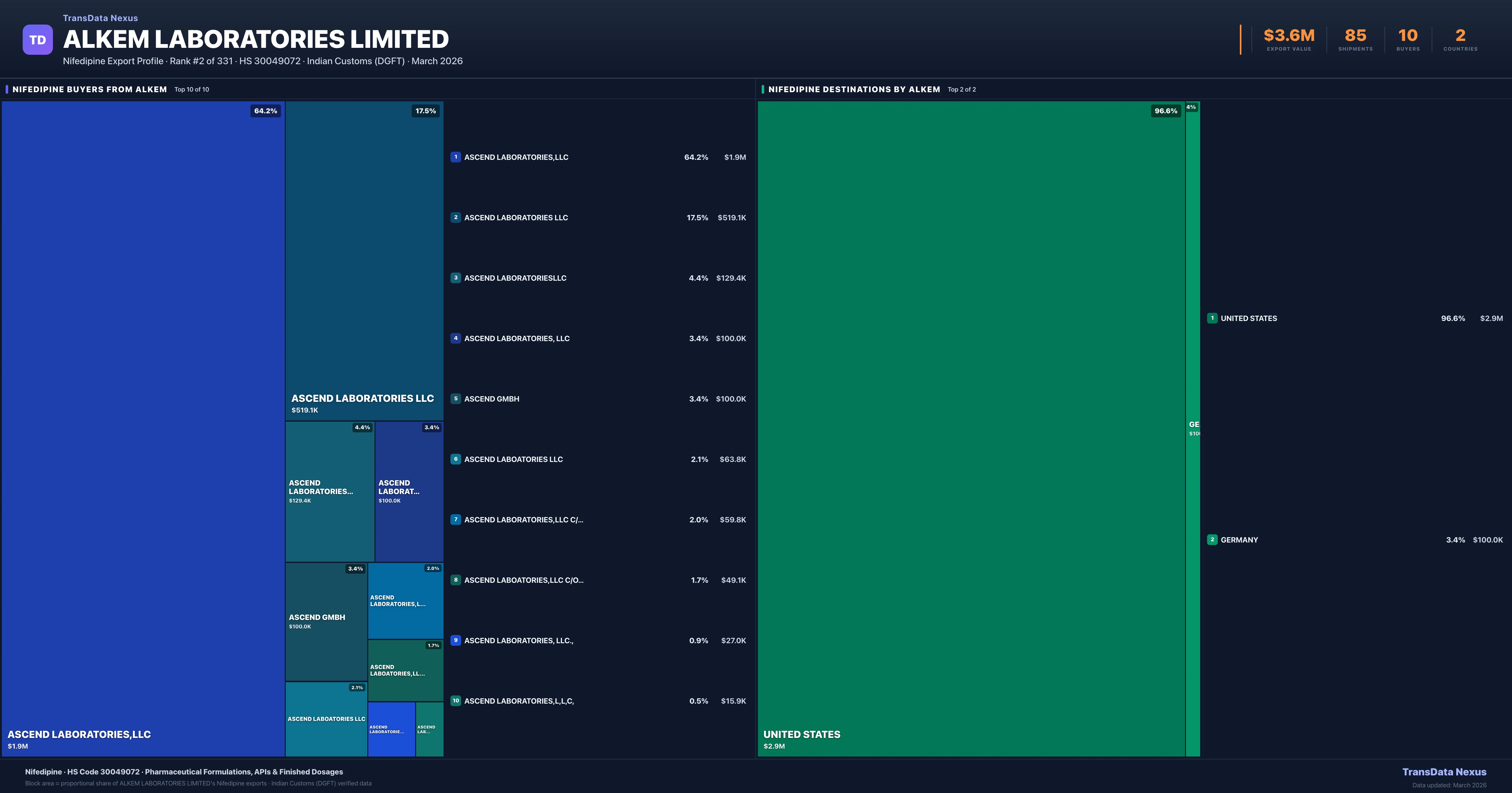 Alkem Laboratories Limited — Nifedipine Export Profile: Buyers & Destinations