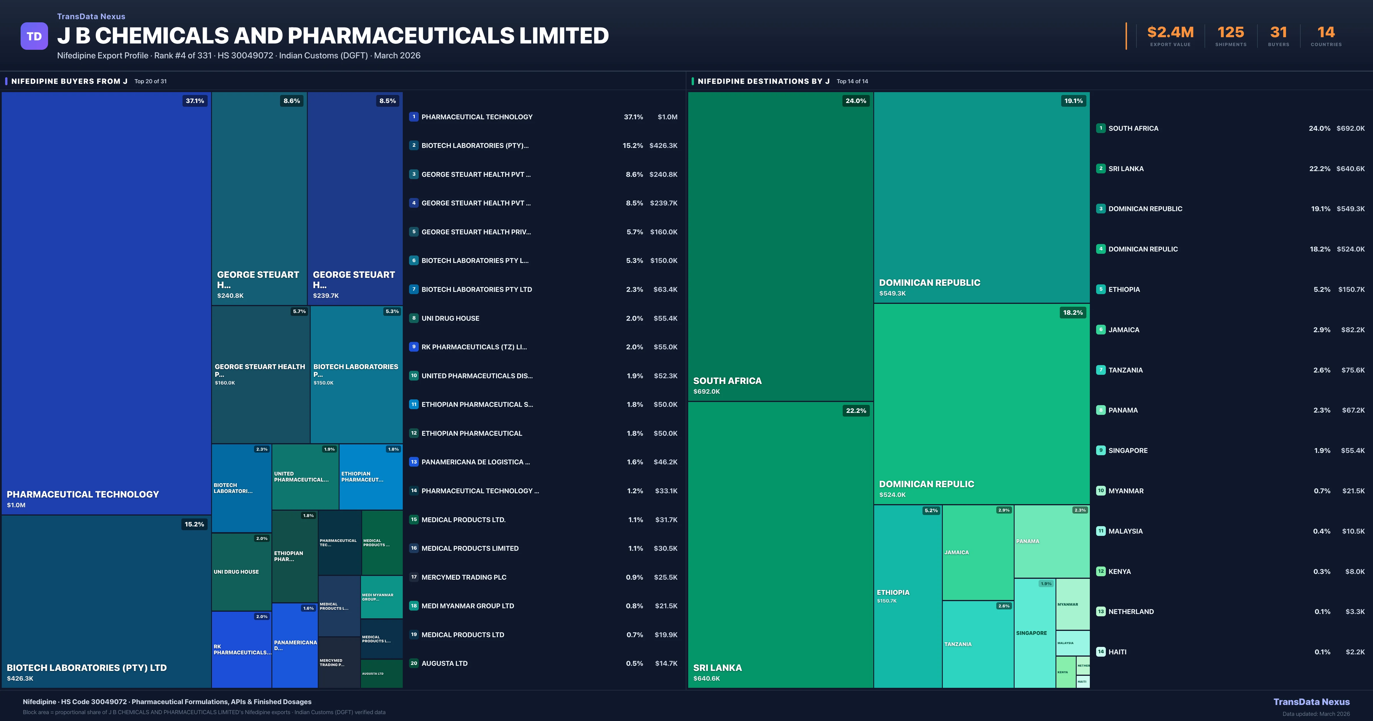 J B Chemicals AND Pharmaceuticals Limited β Nifedipine Export Profile: Buyers & Destinations