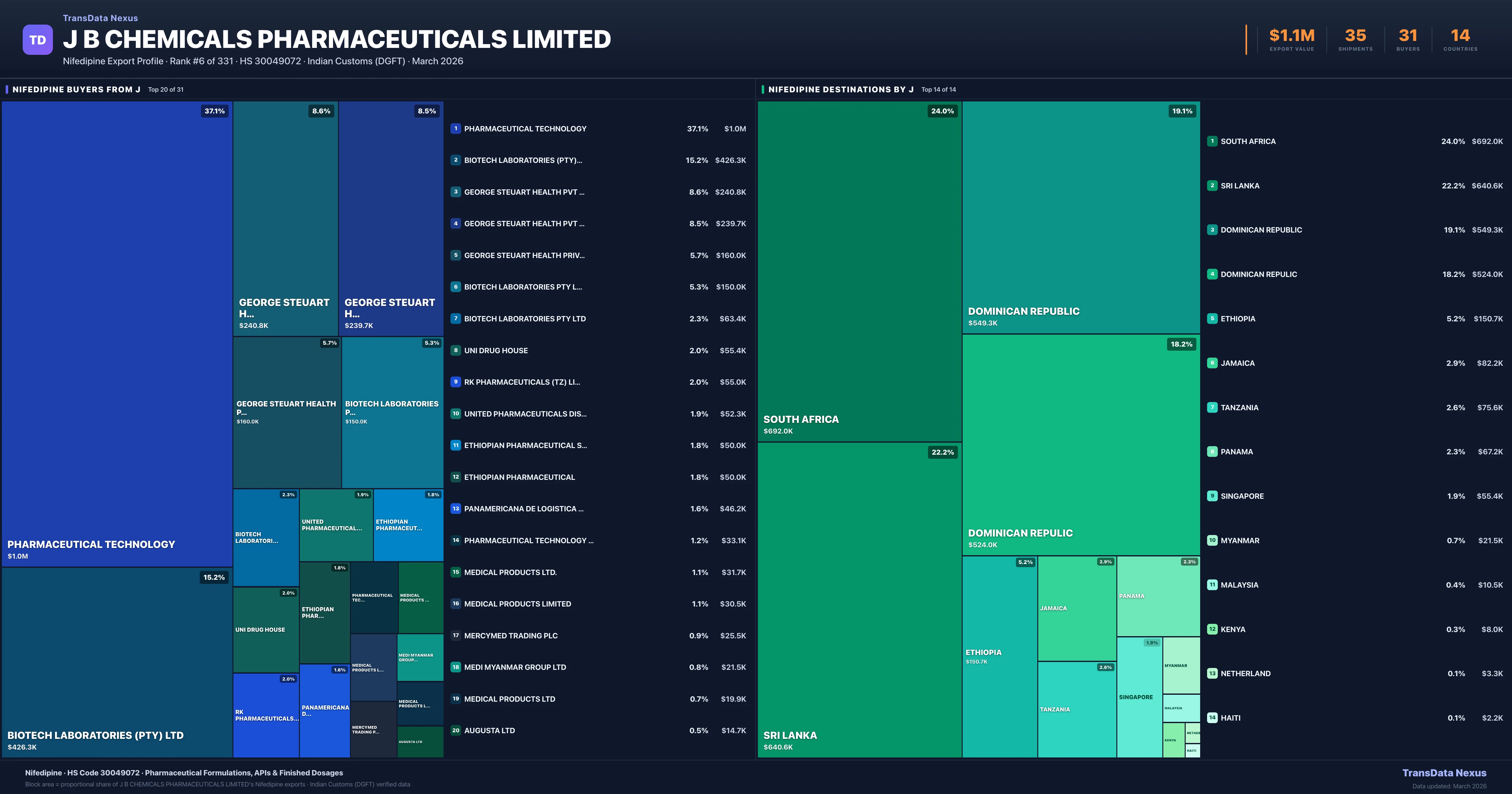 J B Chemicals Pharmaceuticals Limited — Nifedipine Export Profile: Buyers & Destinations