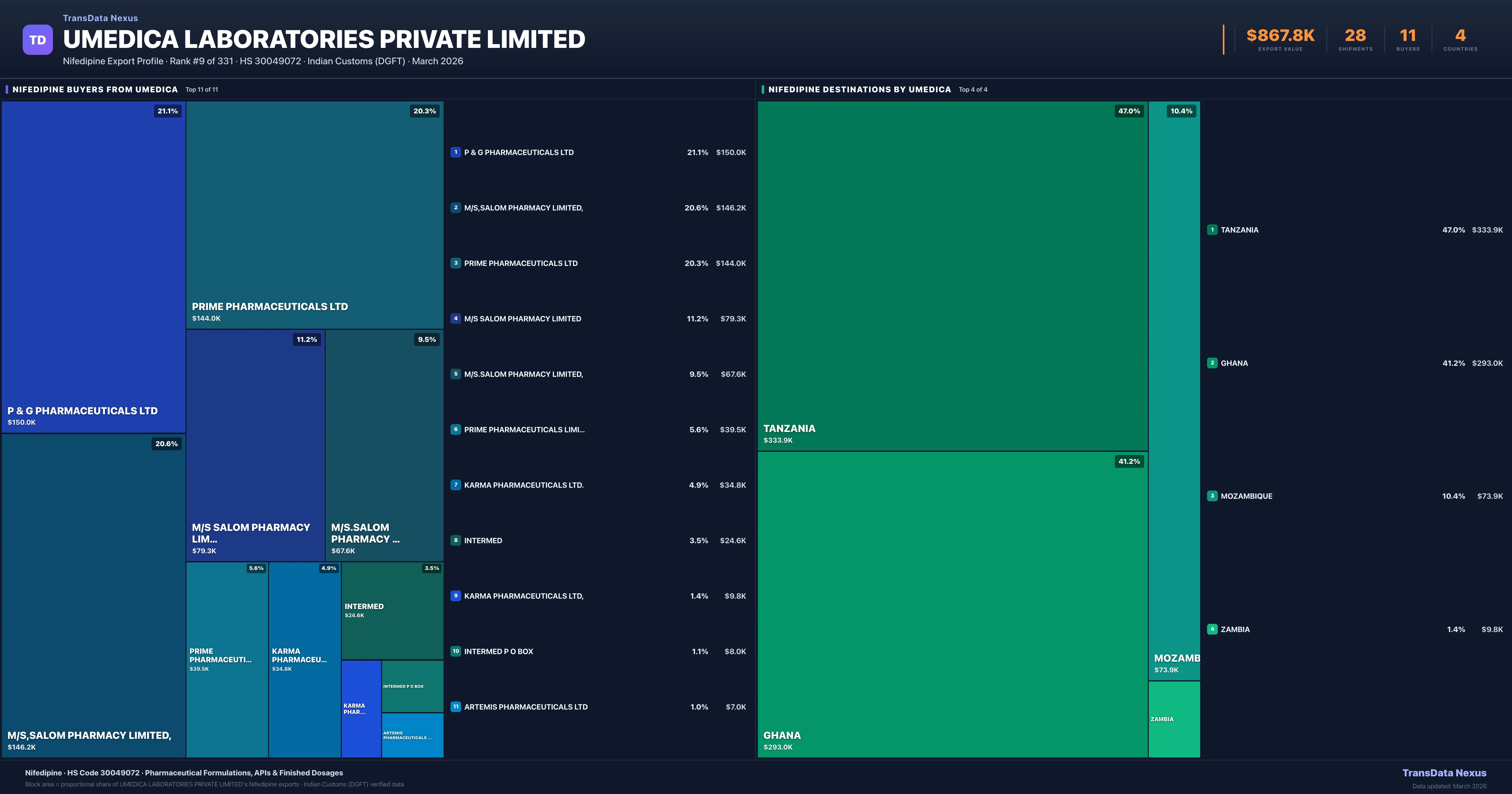 Umedica Laboratories Private Limited — Nifedipine Export Profile: Buyers & Destinations
