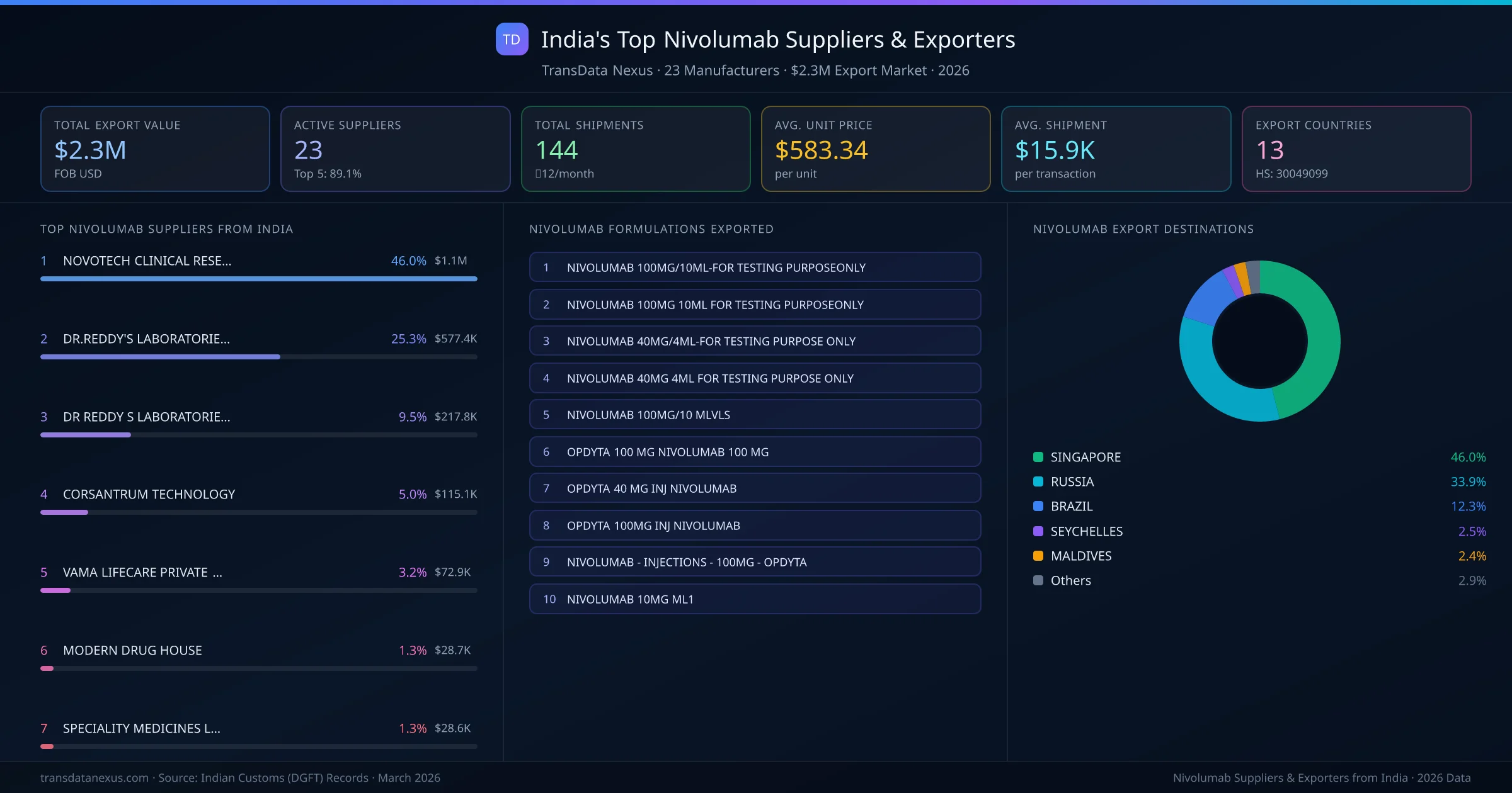 Who Exports Nivolumab from India — 23 Suppliers Behind a $2.3M Market