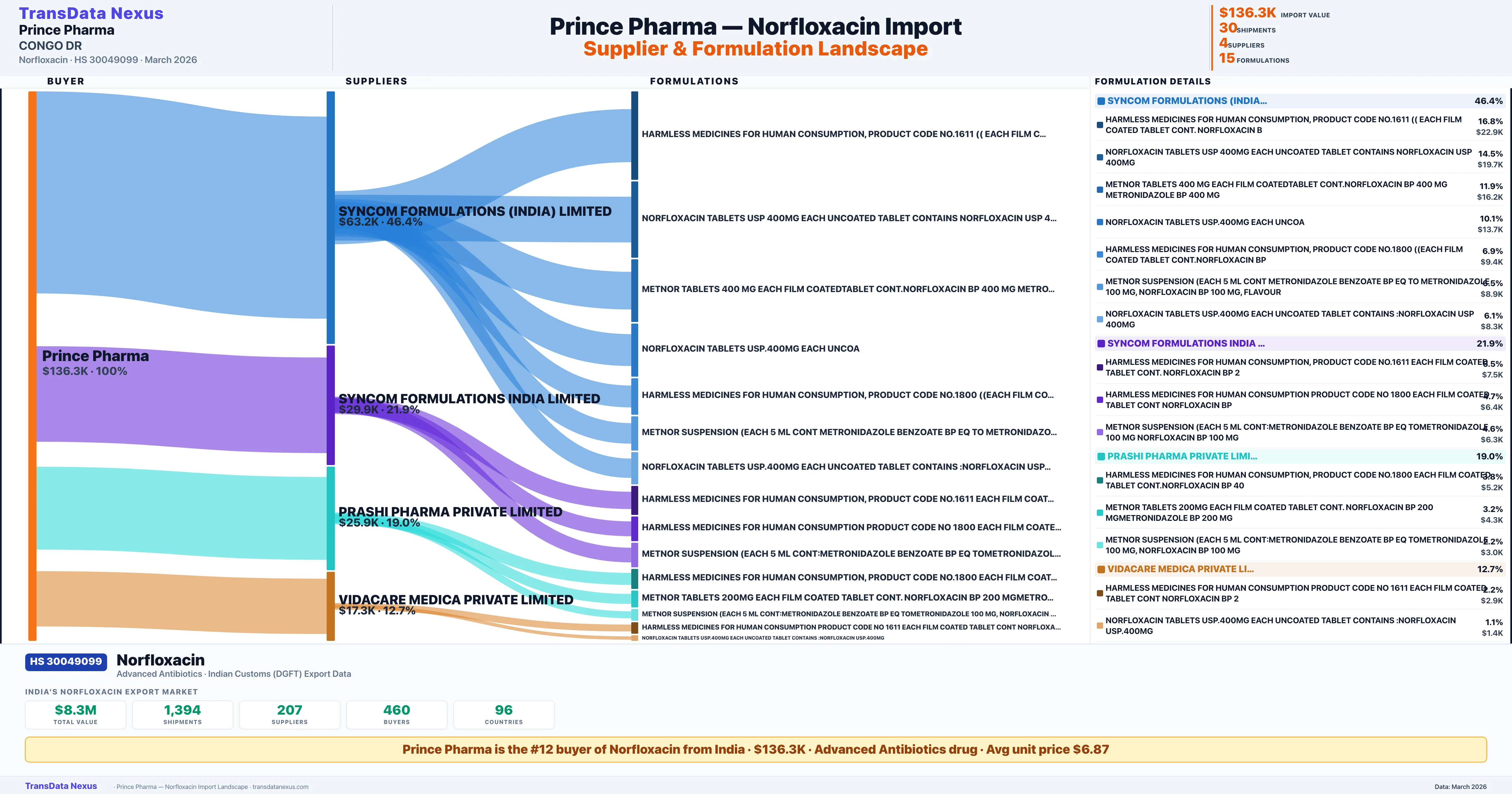 PRINCE PHARMA — Norfloxacin Import Profile: Suppliers, Formulations & Sources