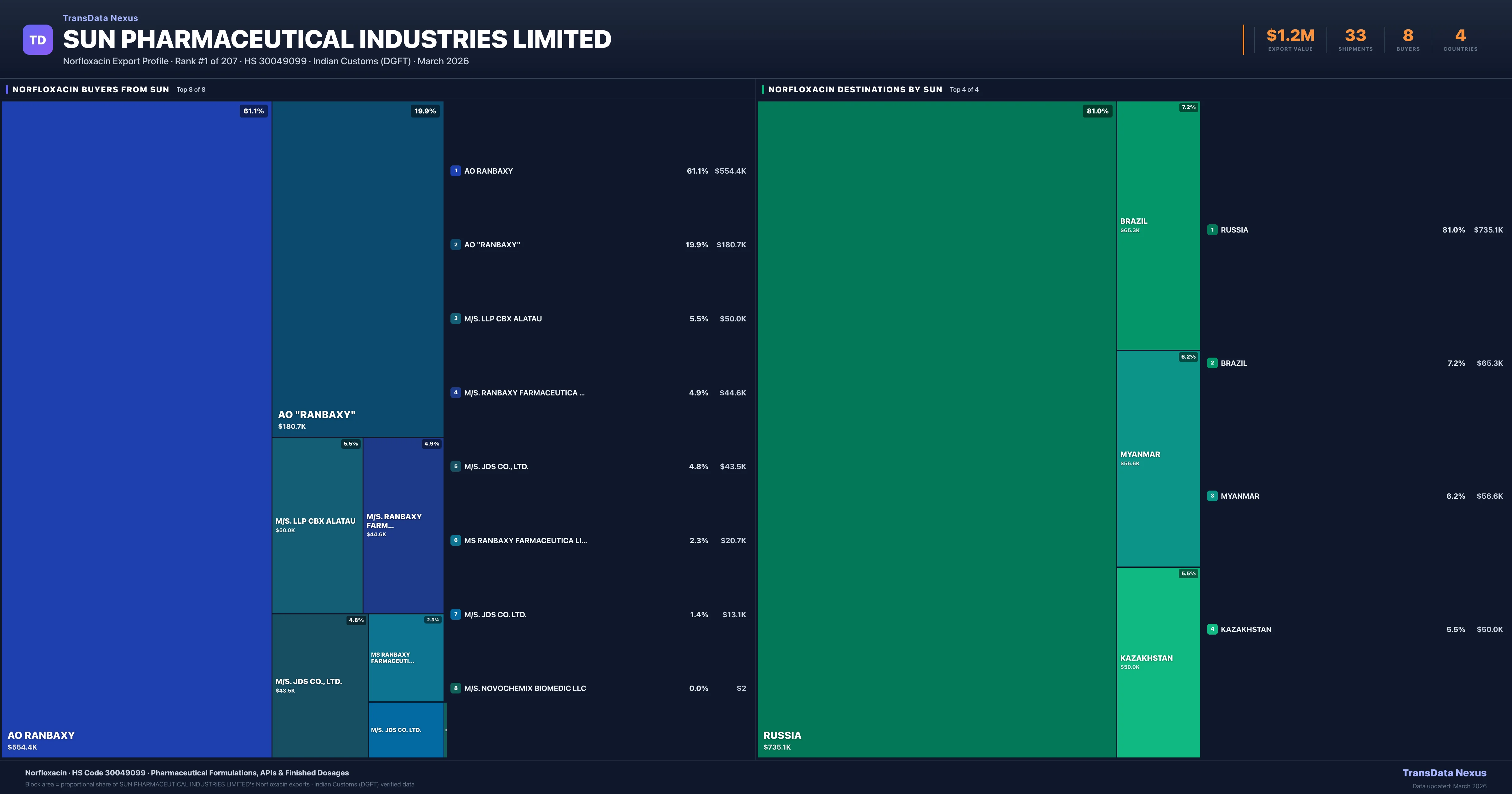 SUN Pharmaceutical Industries Limited — Norfloxacin Export Profile: Buyers & Destinations