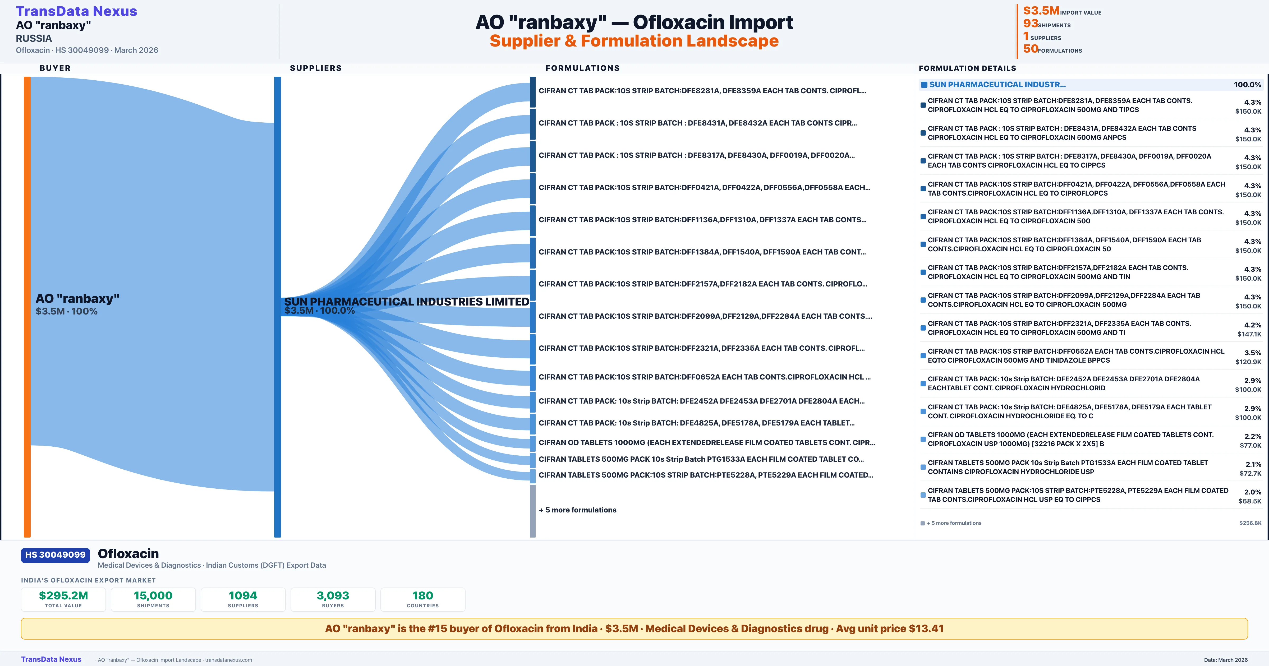 AO RANBAXY — Ofloxacin Import Profile: Suppliers, Formulations & Sources