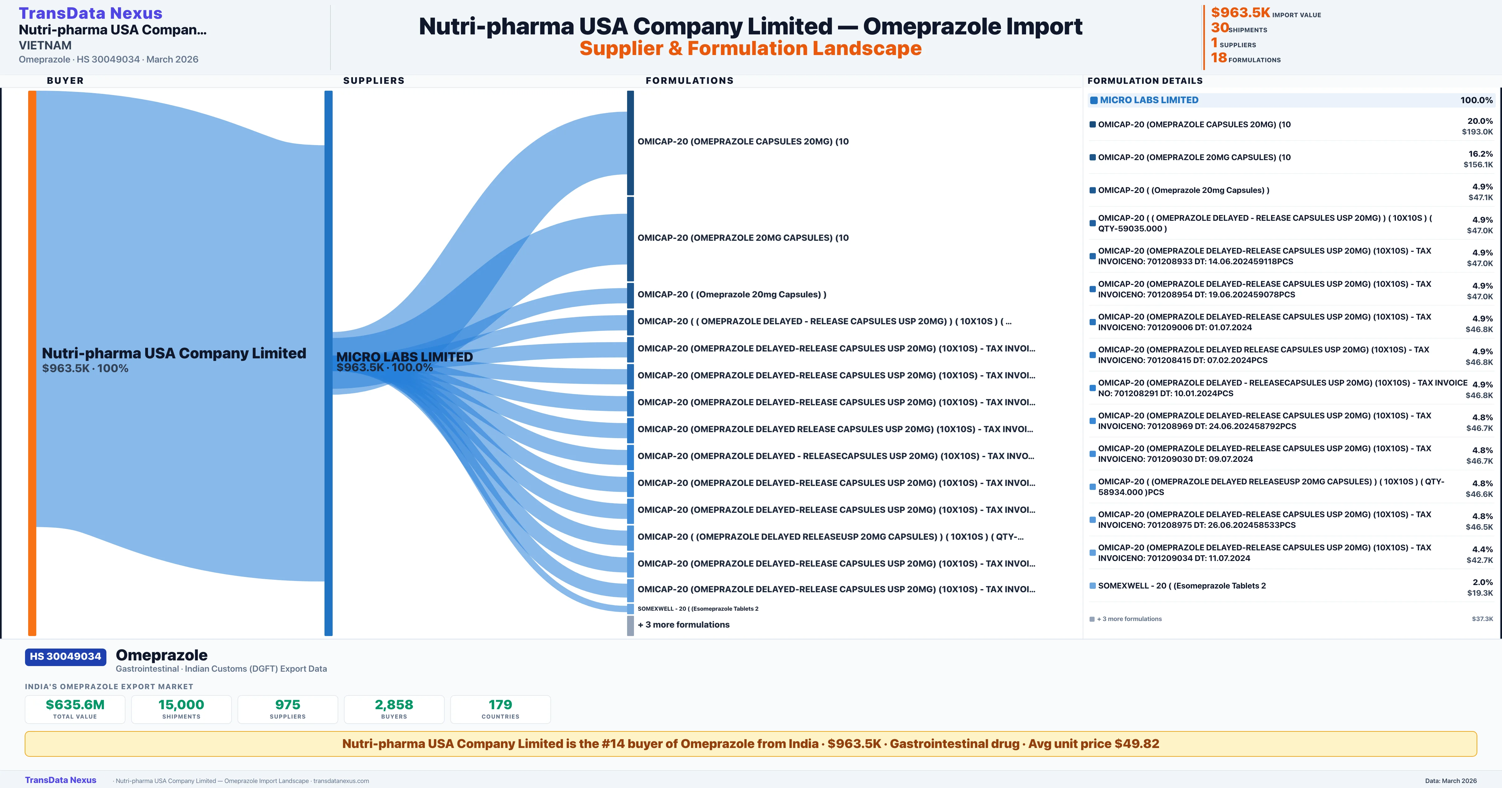 NUTRI-PHARMA USA COMPANY LIMITED β Omeprazole Import Profile: Suppliers, Formulations & Sources