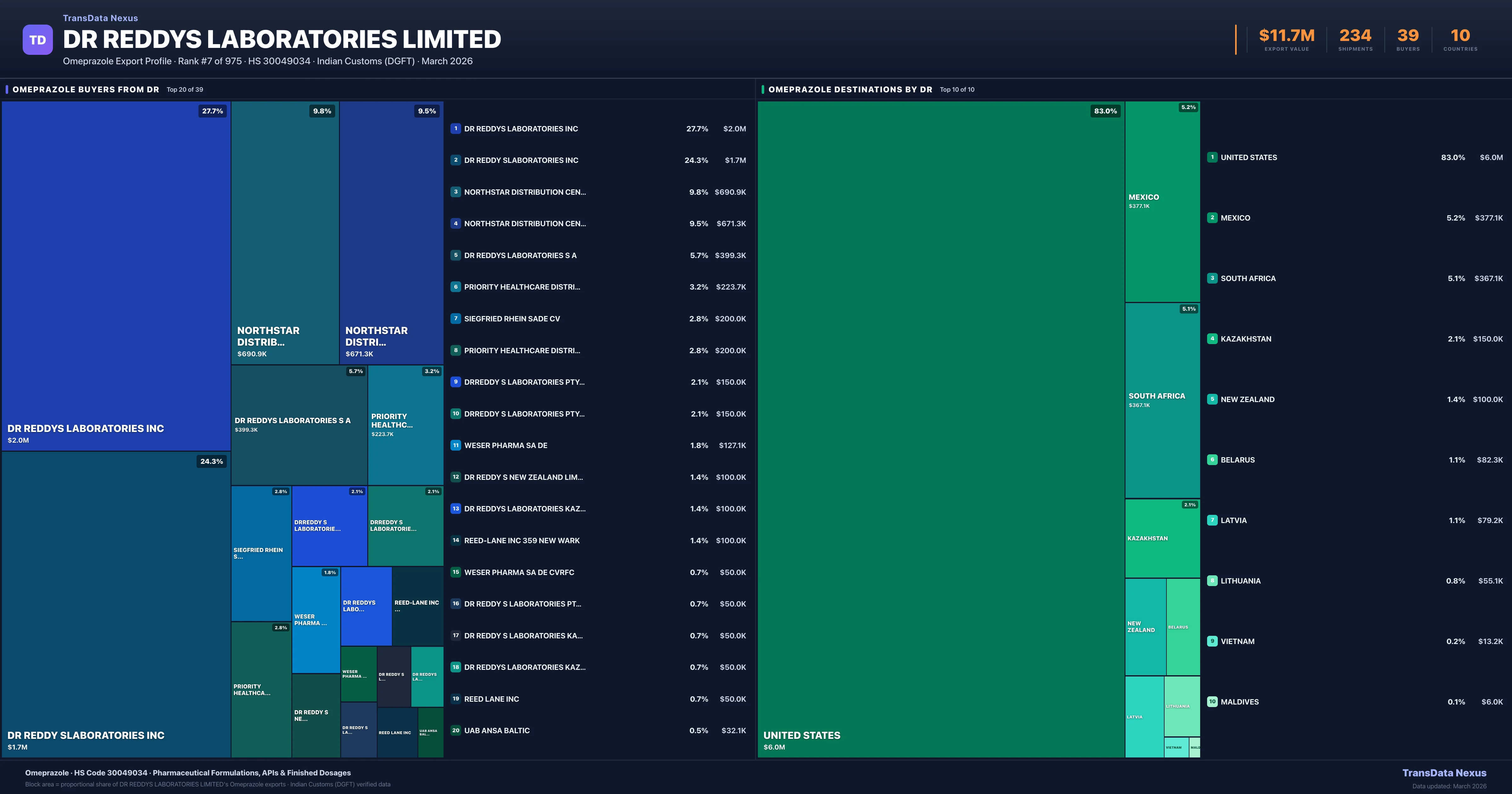 DR Reddys Laboratories Limited — Omeprazole Export Profile: Buyers & Destinations