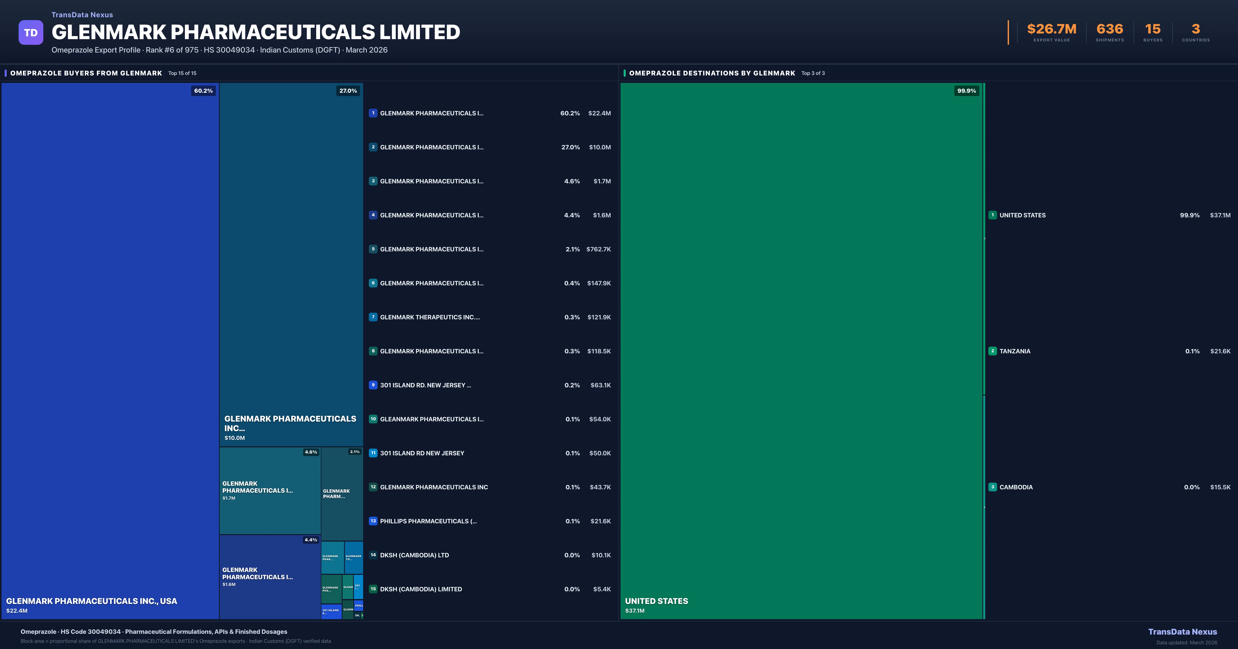 Glenmark Pharmaceuticals Limited — Omeprazole Export Profile: Buyers & Destinations