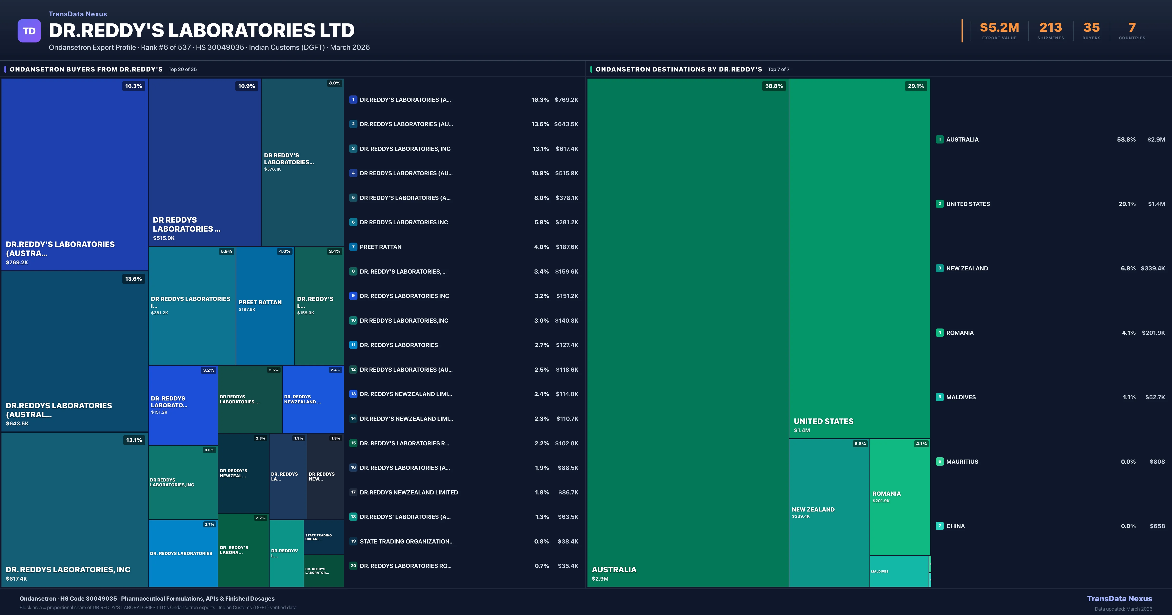 Dr.reddy's Laboratories Ltd — Ondansetron Export Profile: Buyers & Destinations