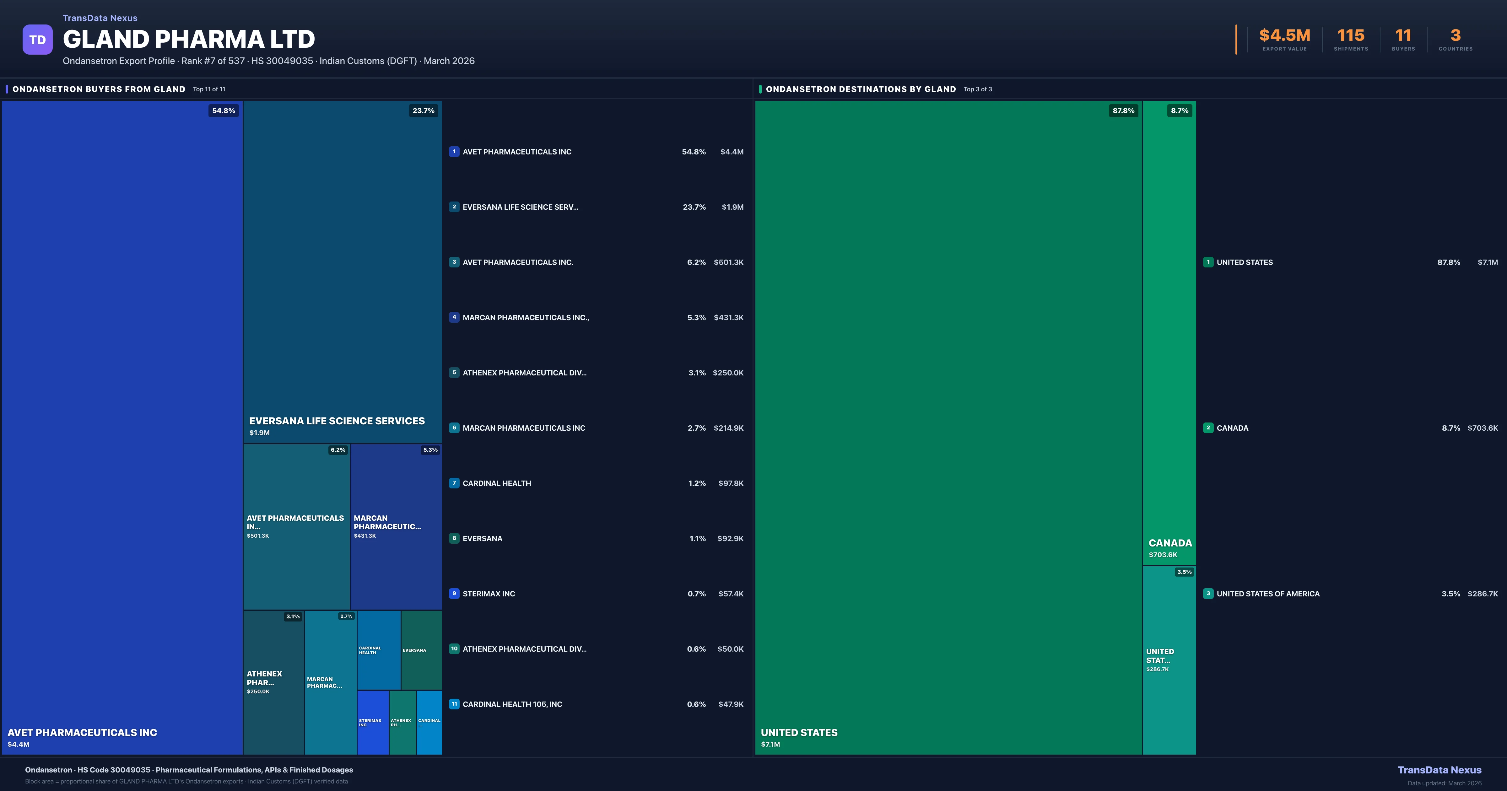 Gland Pharma Ltd — Ondansetron Export Profile: Buyers & Destinations