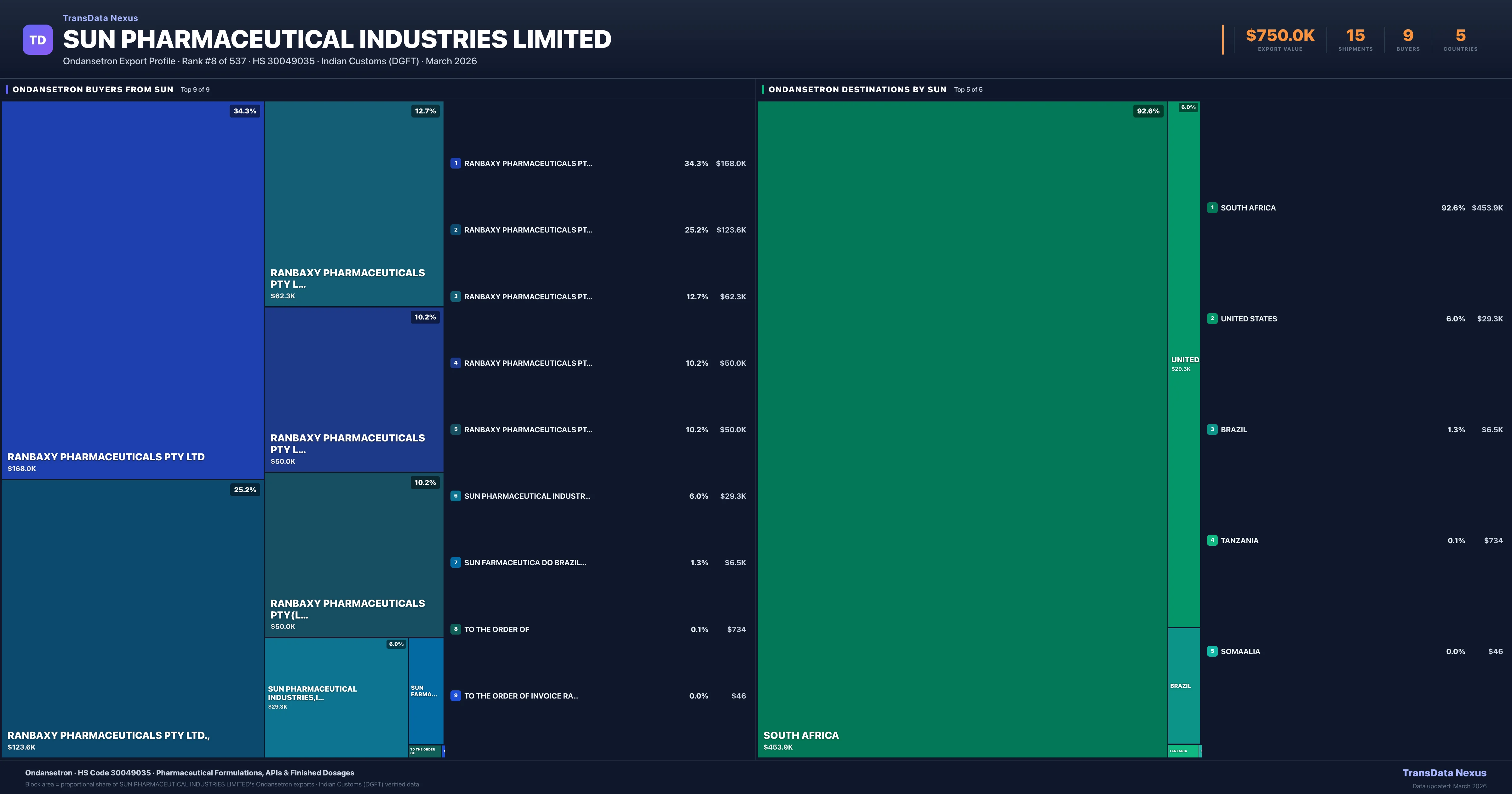 SUN Pharmaceutical Industries Limited — Ondansetron Export Profile: Buyers & Destinations