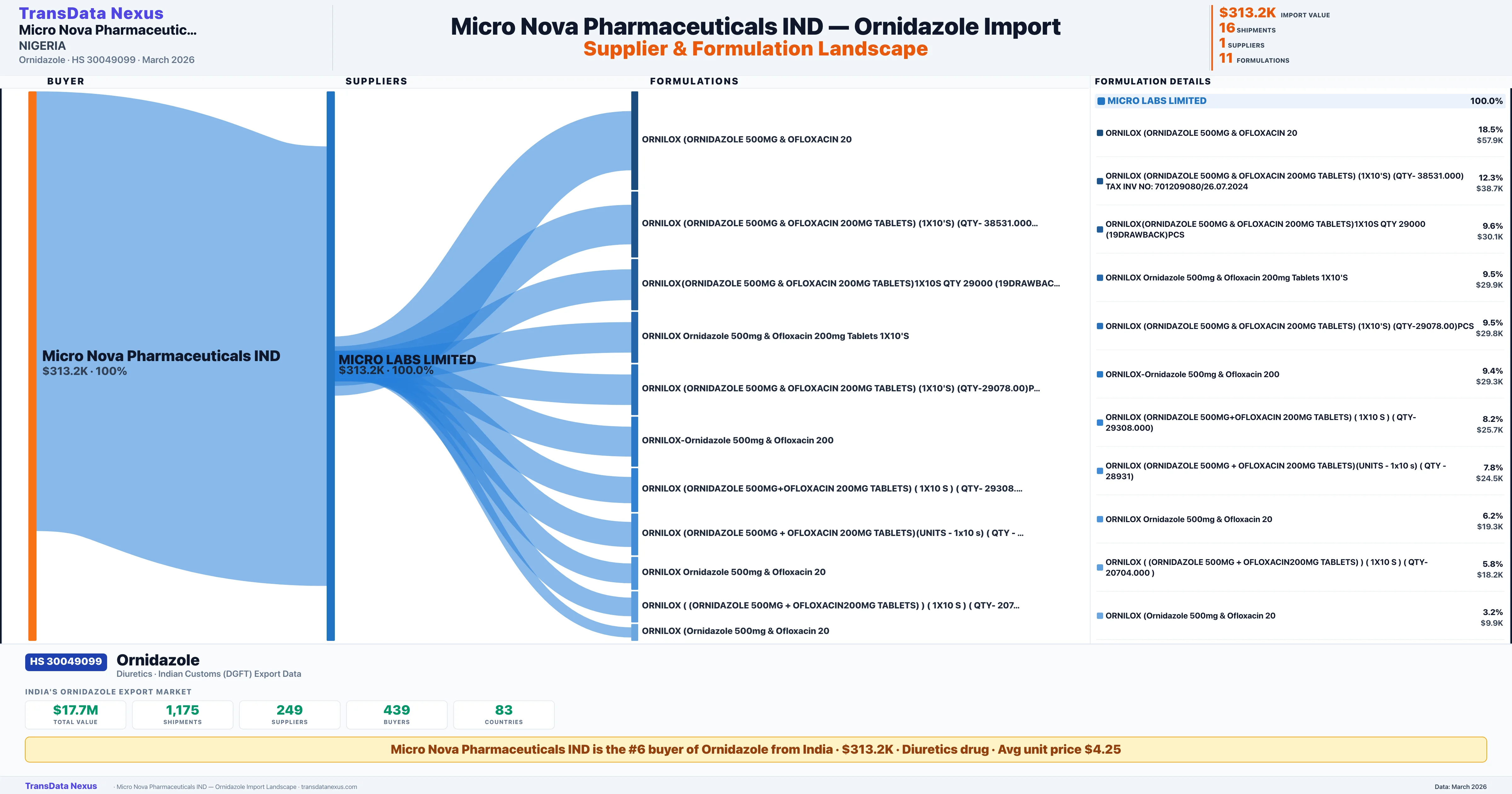 MICRO NOVA PHARMACEUTICALS IND β Ornidazole Import Profile: Suppliers, Formulations & Sources