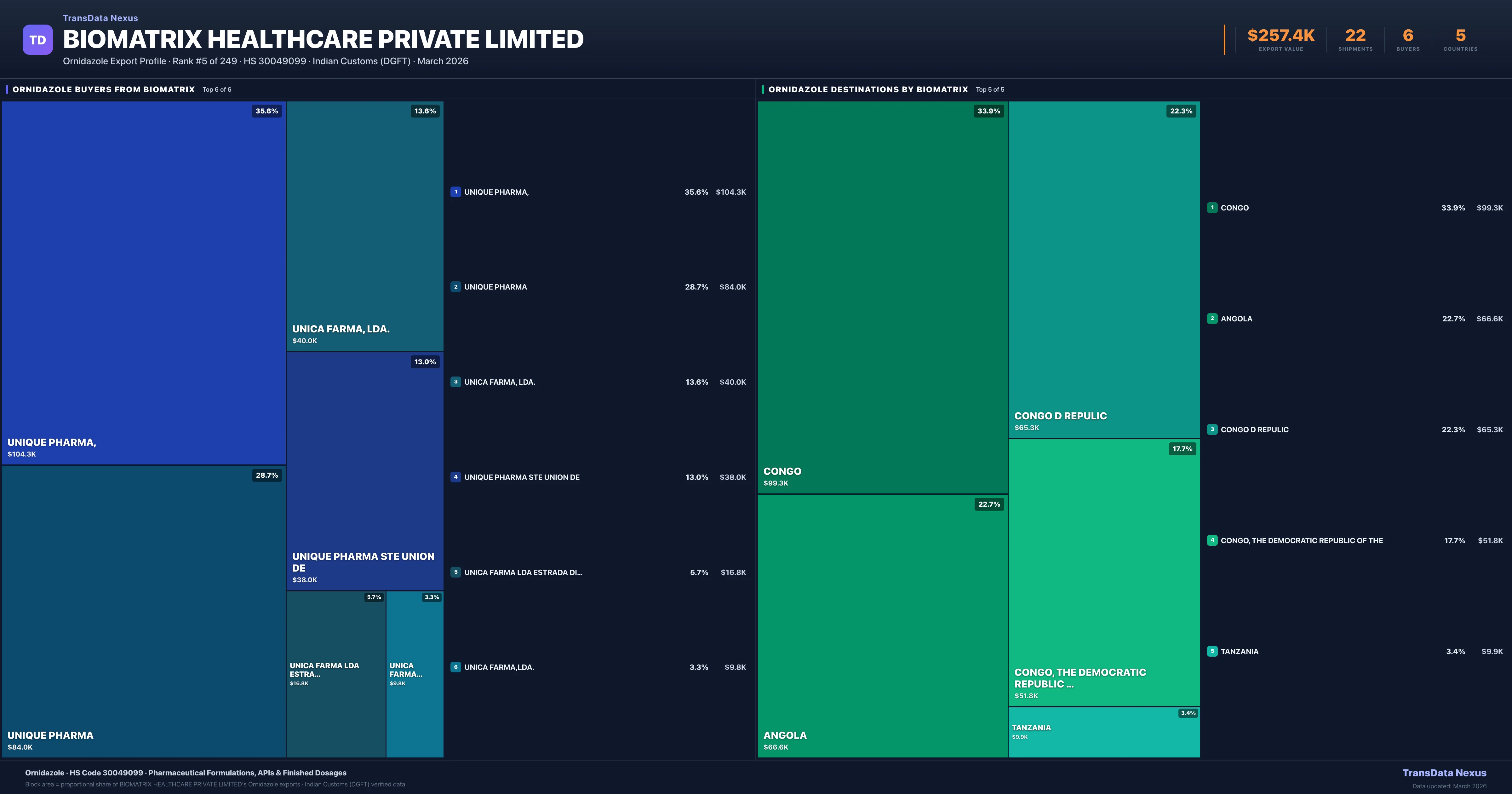 Biomatrix Healthcare Private Limited β Ornidazole Export Profile: Buyers & Destinations