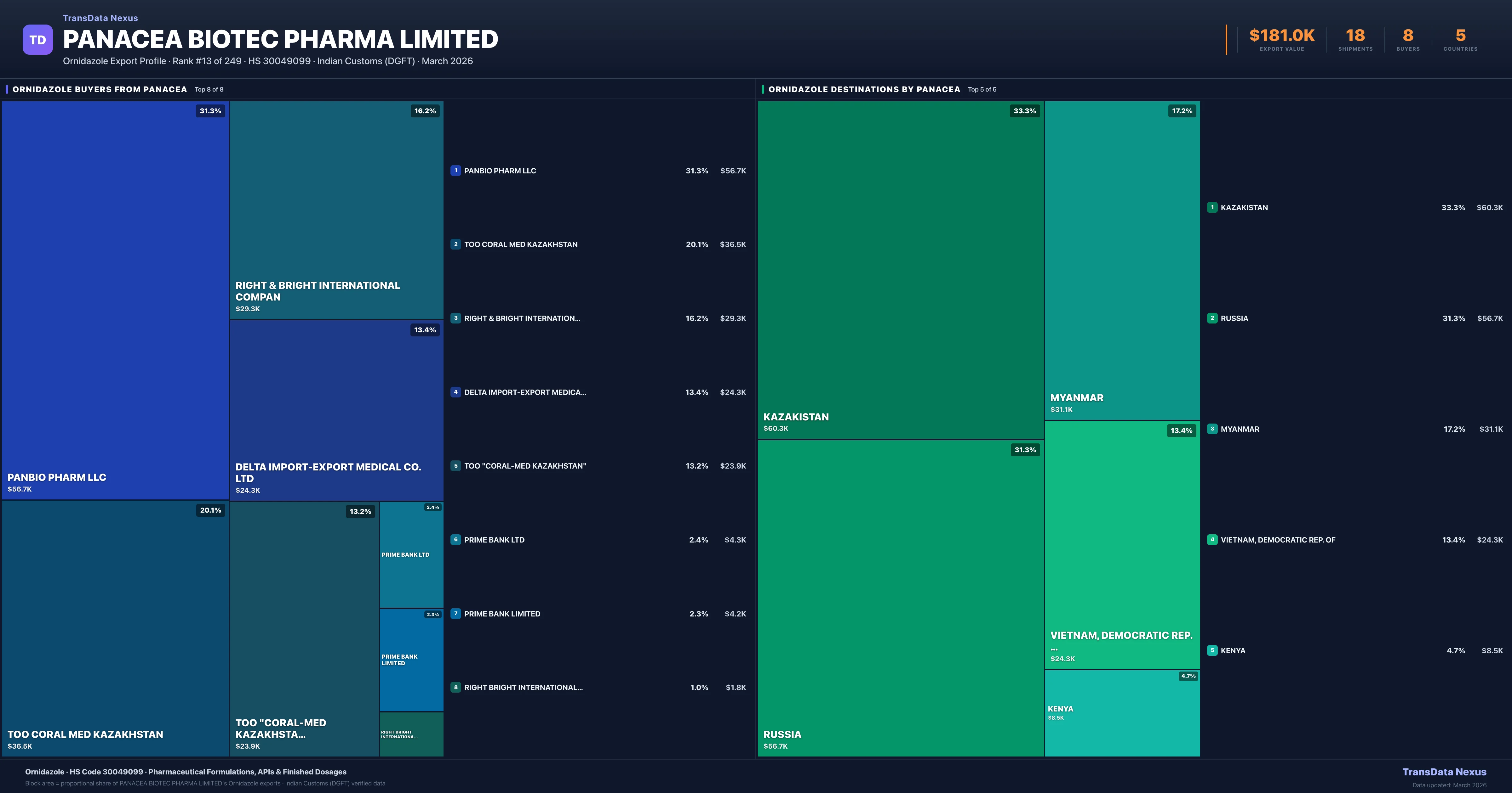 Panacea Biotec Pharma Limited — Ornidazole Export Profile: Buyers & Destinations