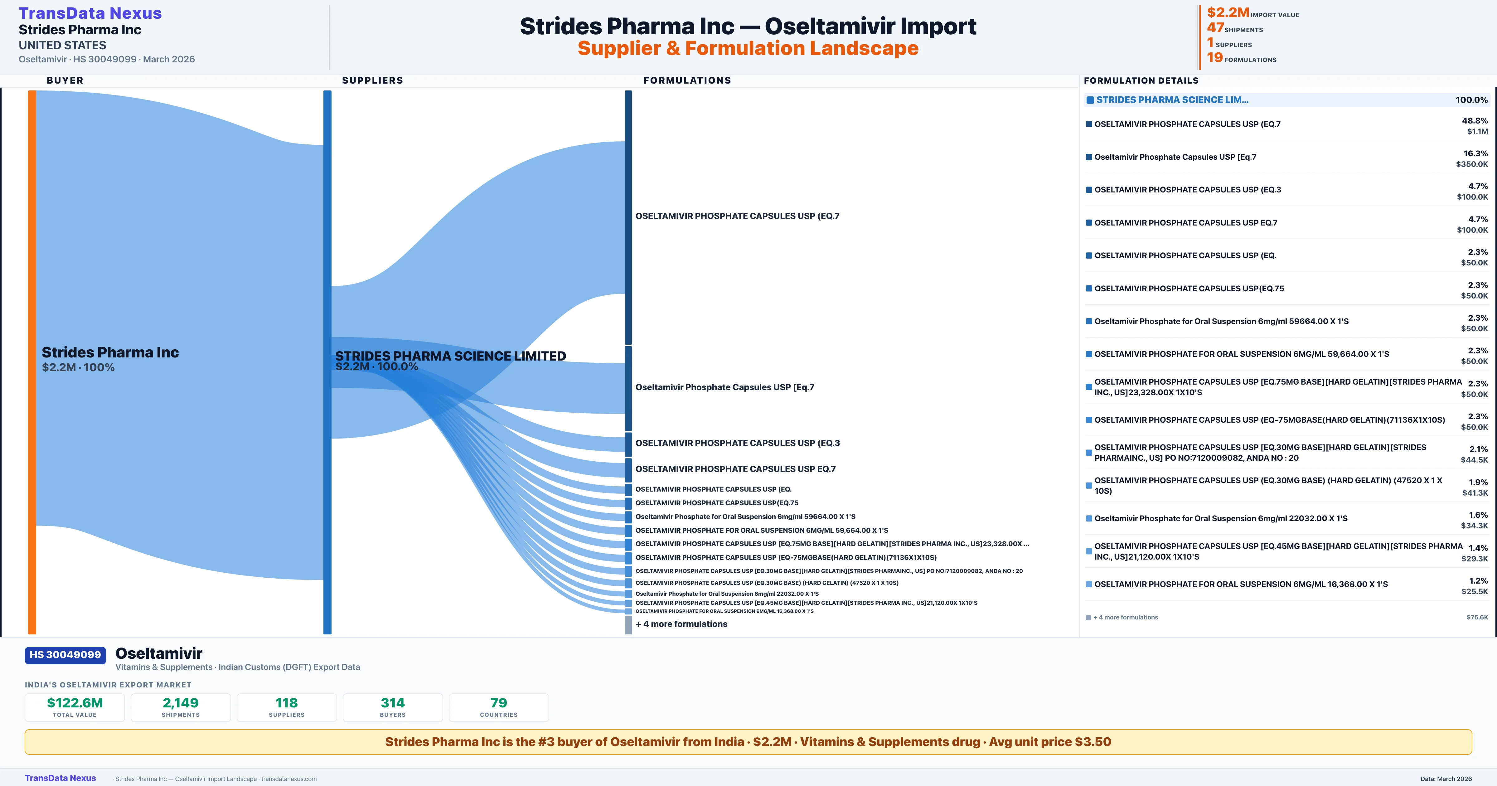 STRIDES PHARMA INC β Oseltamivir Import Profile: Suppliers, Formulations & Sources