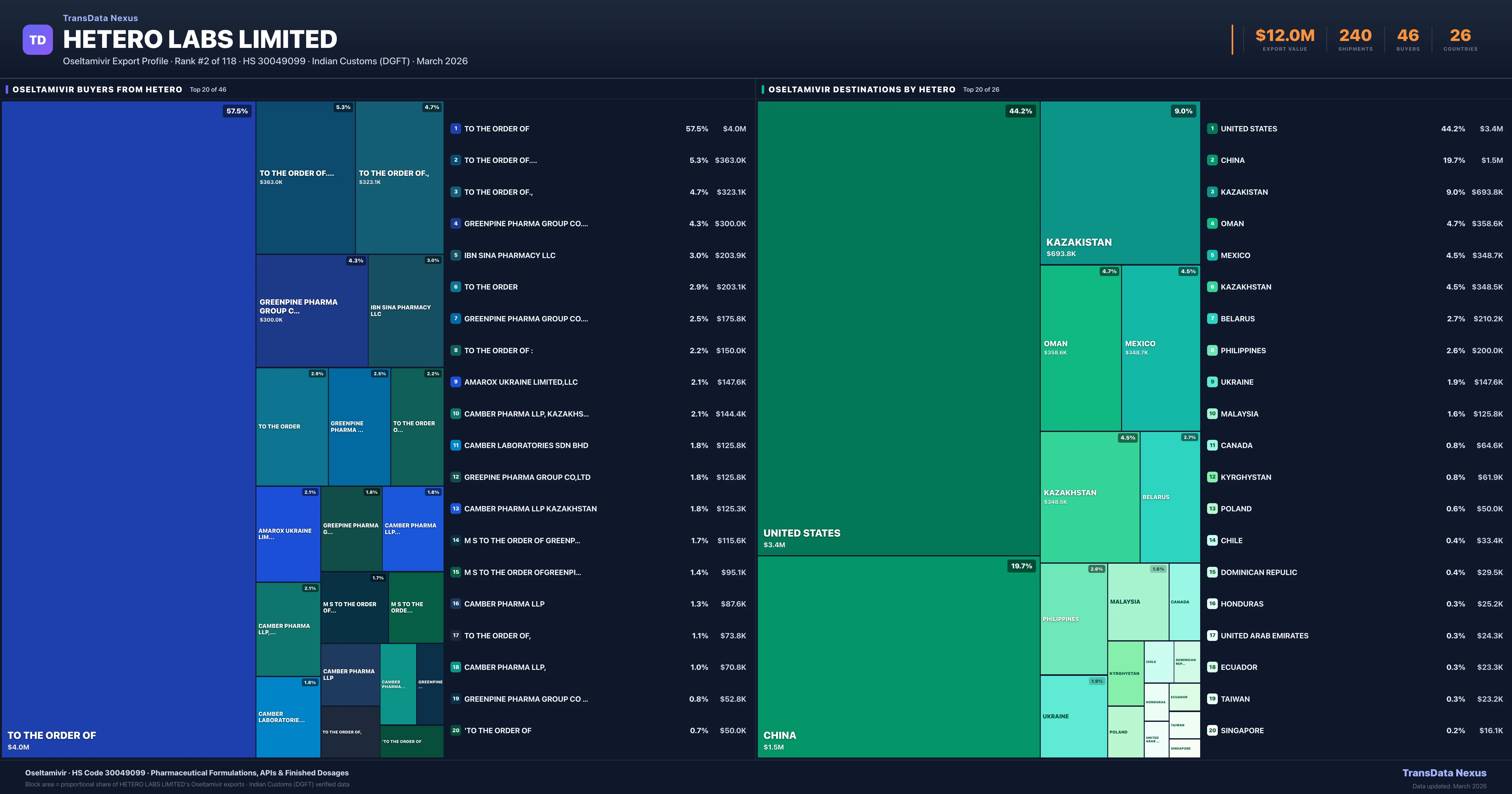 Hetero Labs Limited — Oseltamivir Export Profile: Buyers & Destinations