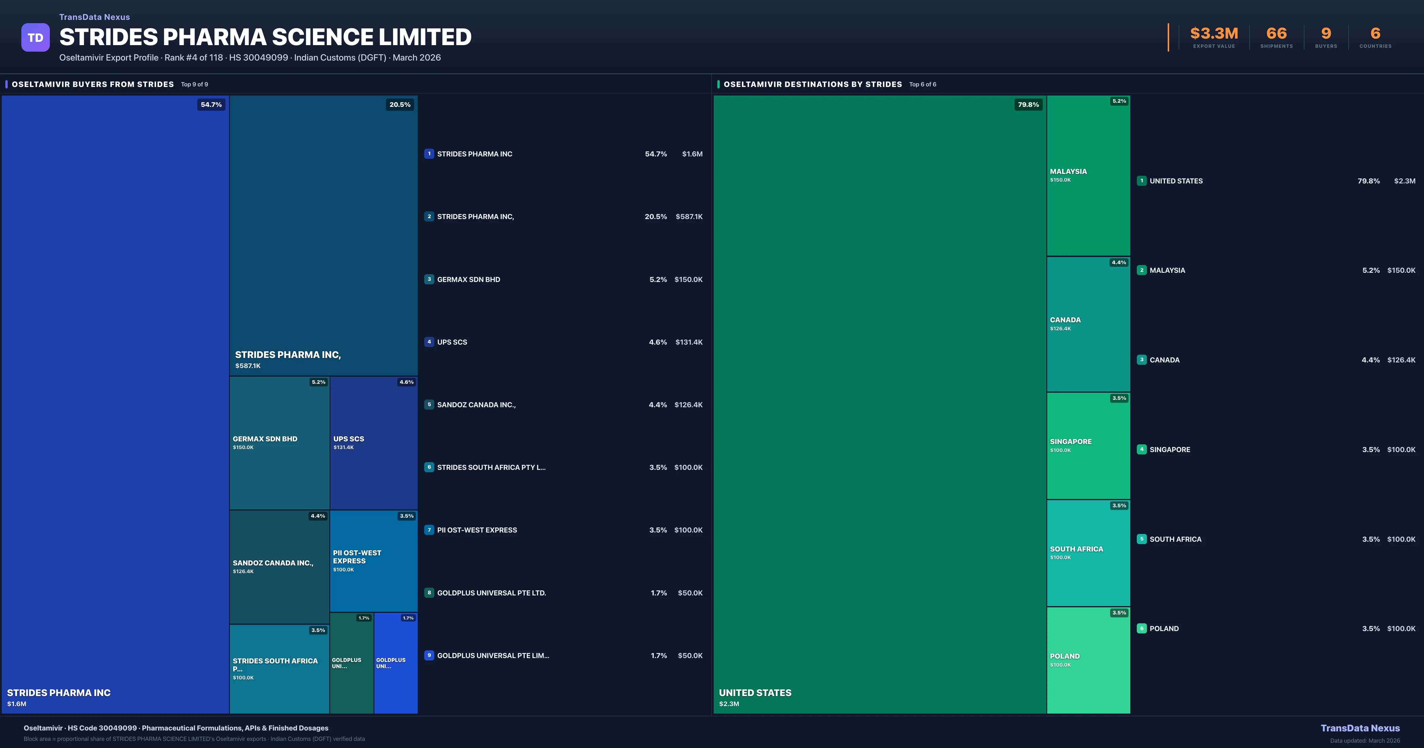 Strides Pharma Science Limited — Oseltamivir Export Profile: Buyers & Destinations