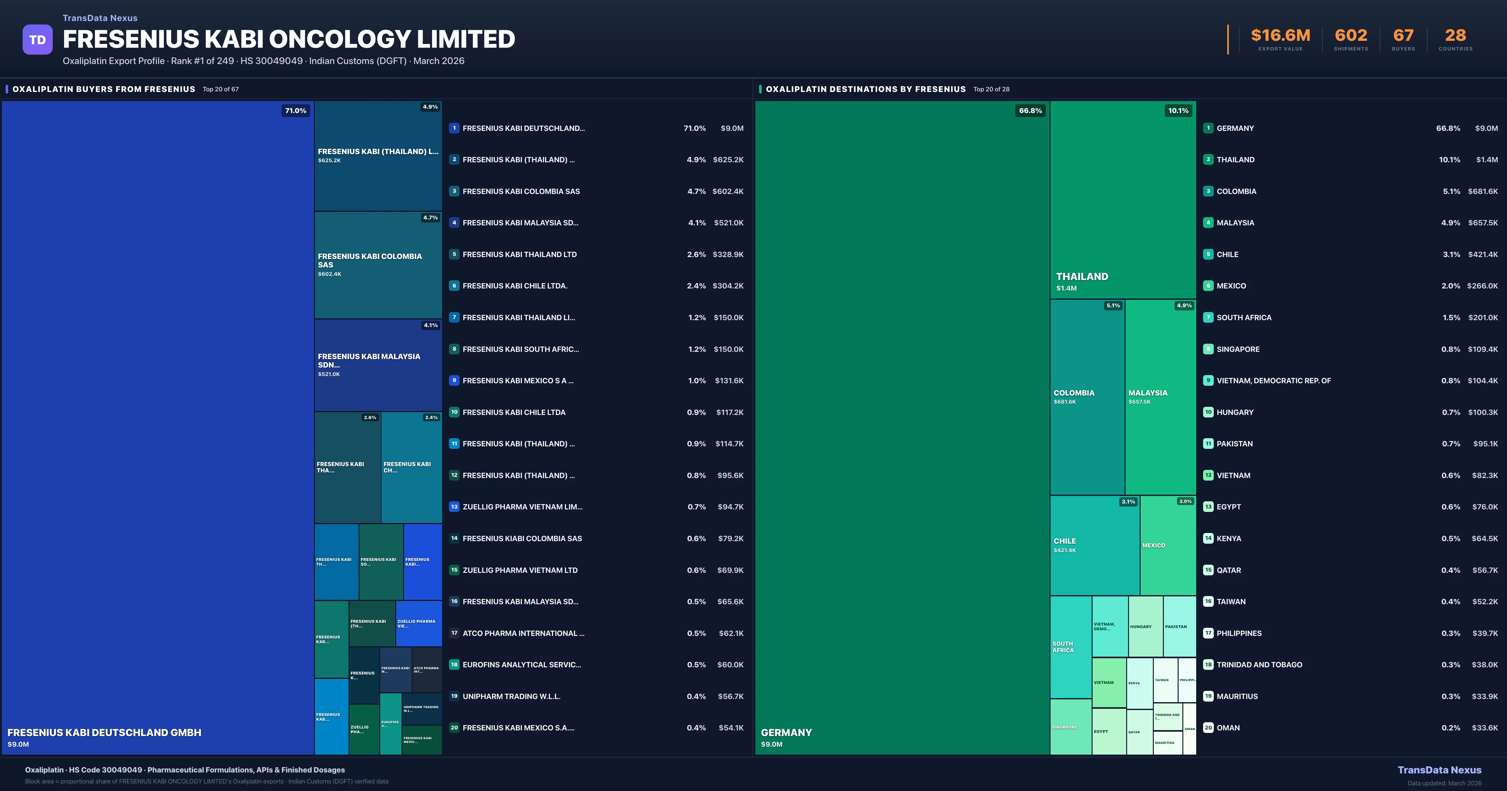 Fresenius Kabi Oncology Limited — Oxaliplatin Export Profile: Buyers & Destinations
