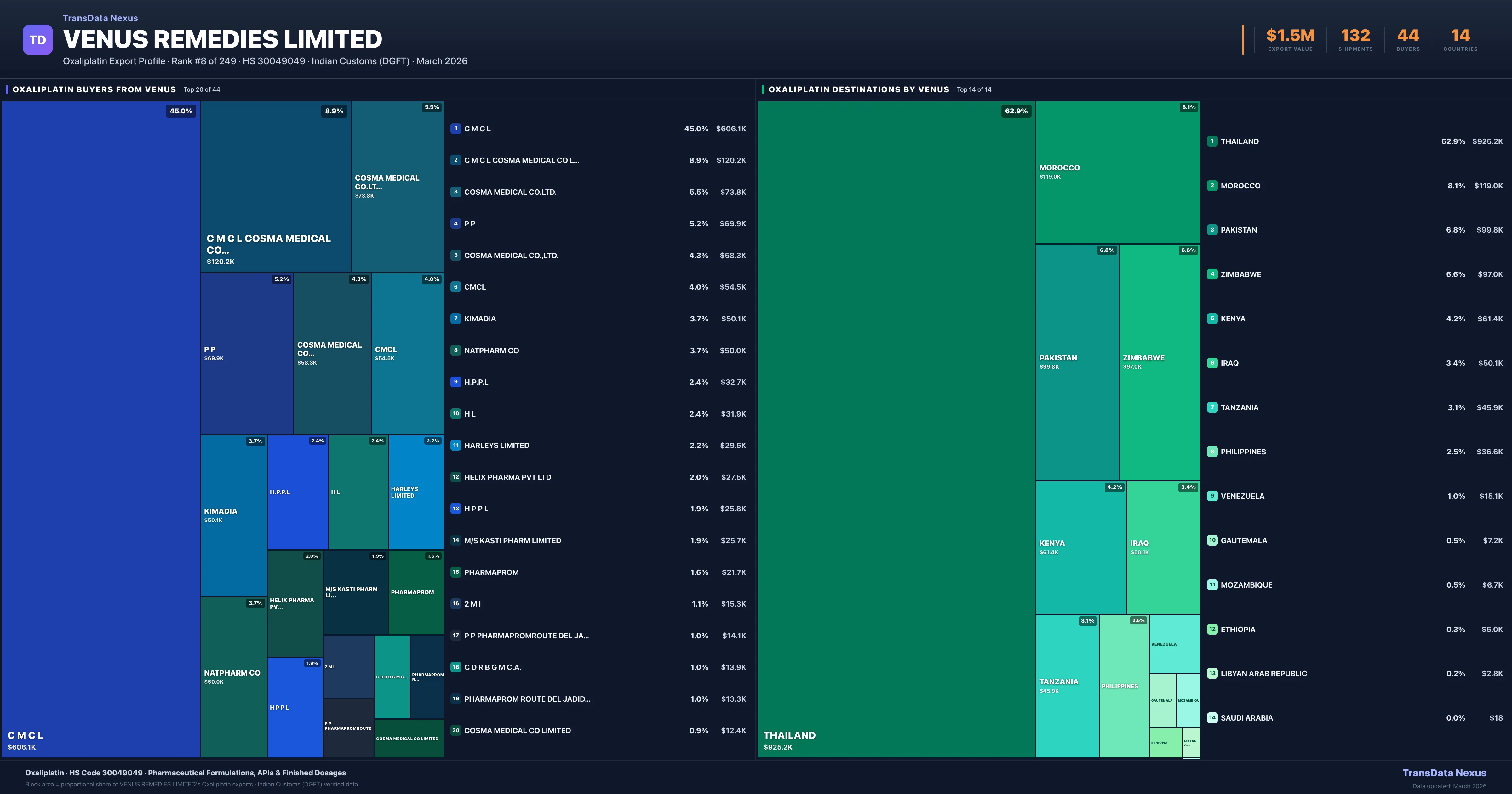 Venus Remedies Limited — Oxaliplatin Export Profile: Buyers & Destinations
