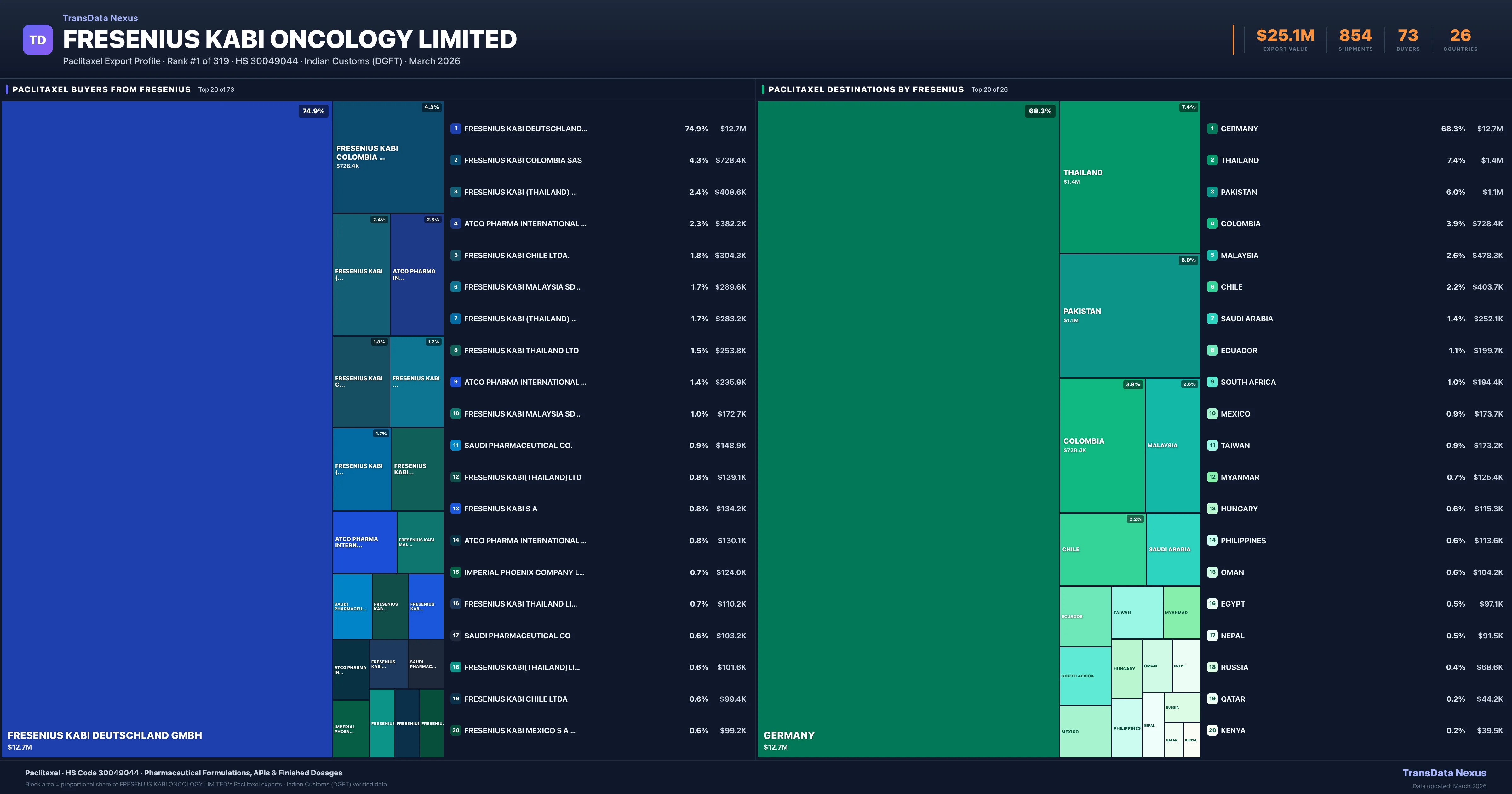 Fresenius Kabi Oncology Limited — Paclitaxel Export Profile: Buyers & Destinations
