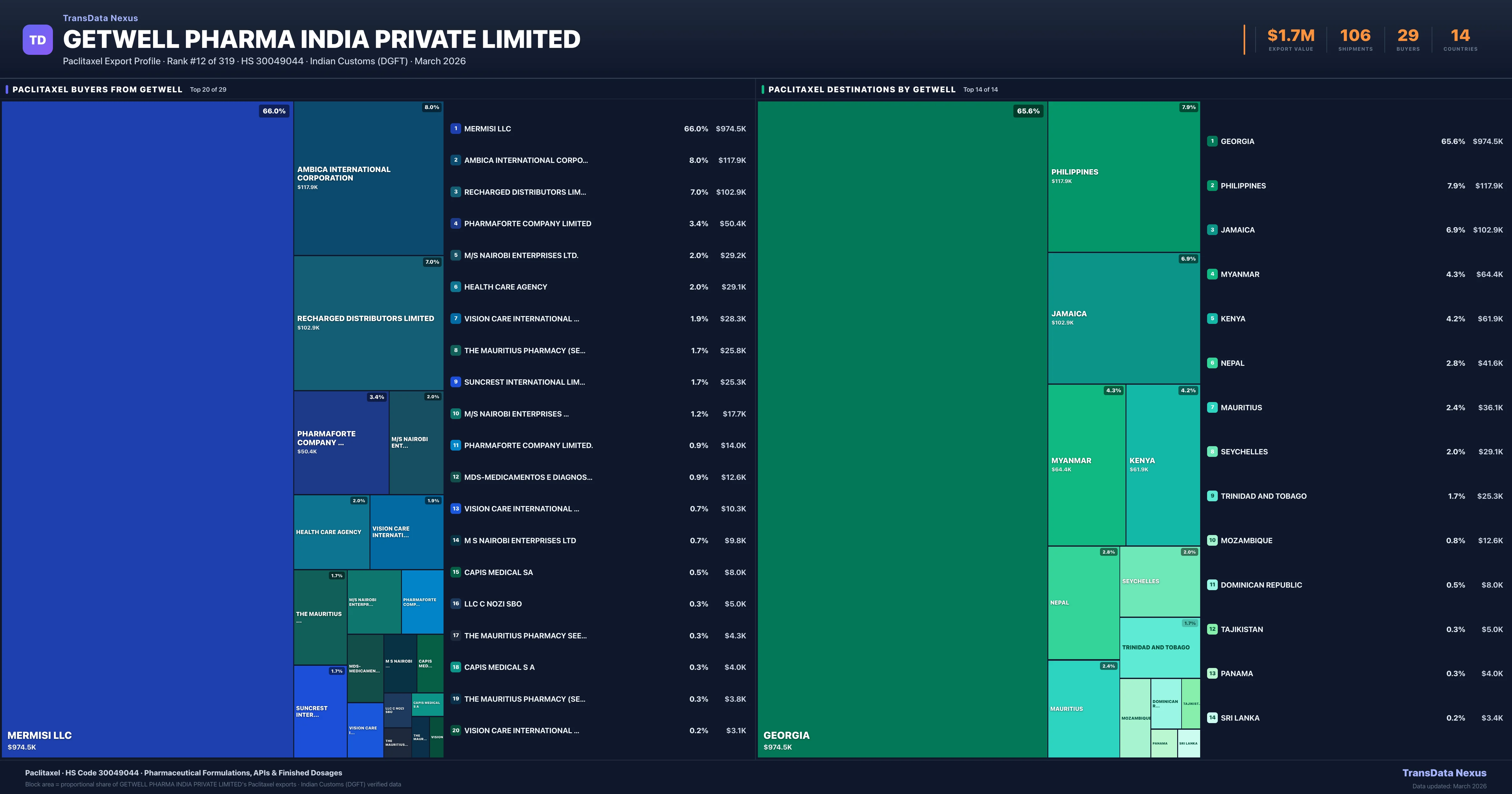 Getwell Pharma India Private Limited — Paclitaxel Export Profile: Buyers & Destinations