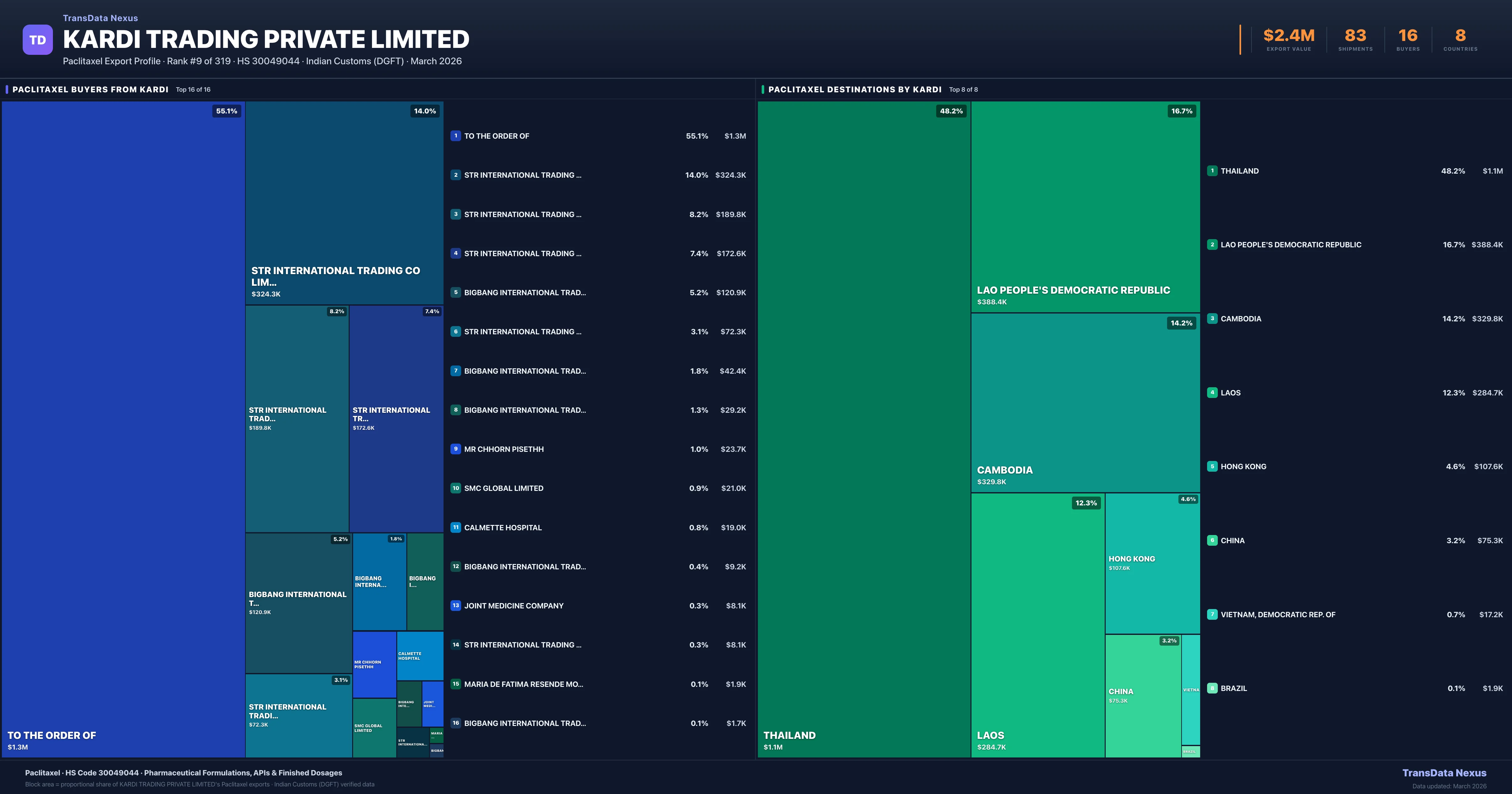 Kardi Trading Private Limited — Paclitaxel Export Profile: Buyers & Destinations
