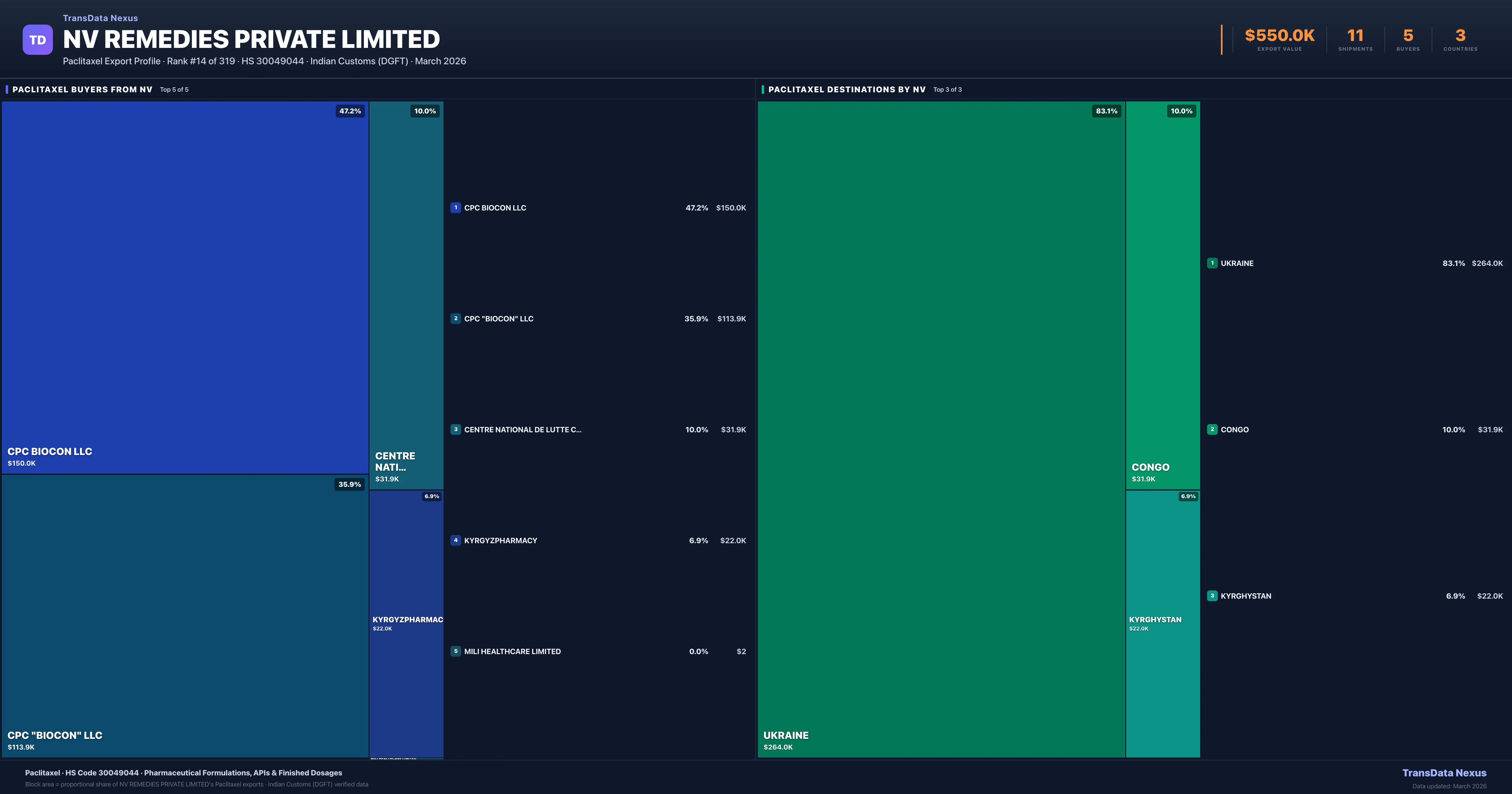 NV Remedies Private Limited β Paclitaxel Export Profile: Buyers & Destinations