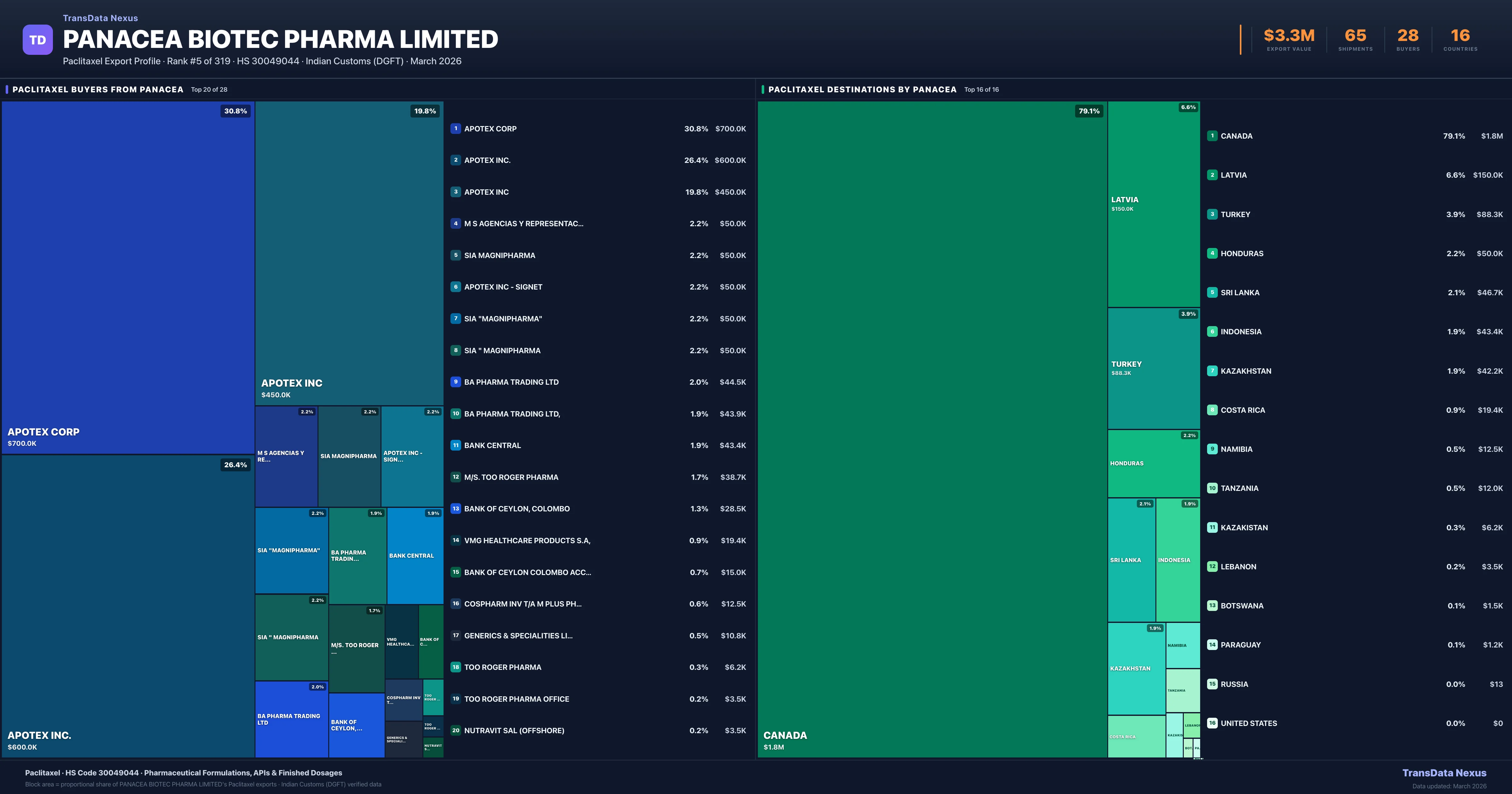 Panacea Biotec Pharma Limited — Paclitaxel Export Profile: Buyers & Destinations