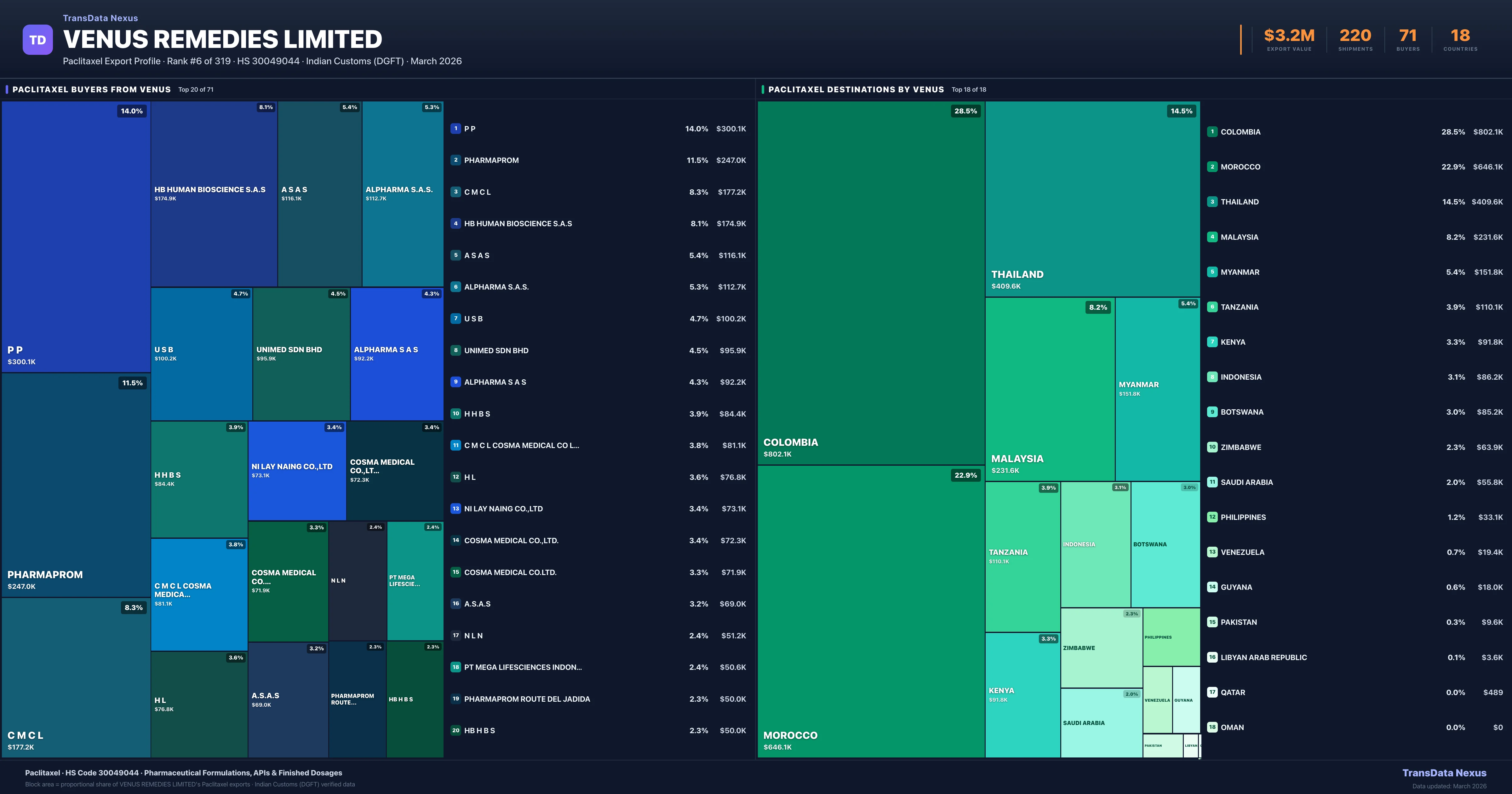 Venus Remedies Limited β Paclitaxel Export Profile: Buyers & Destinations