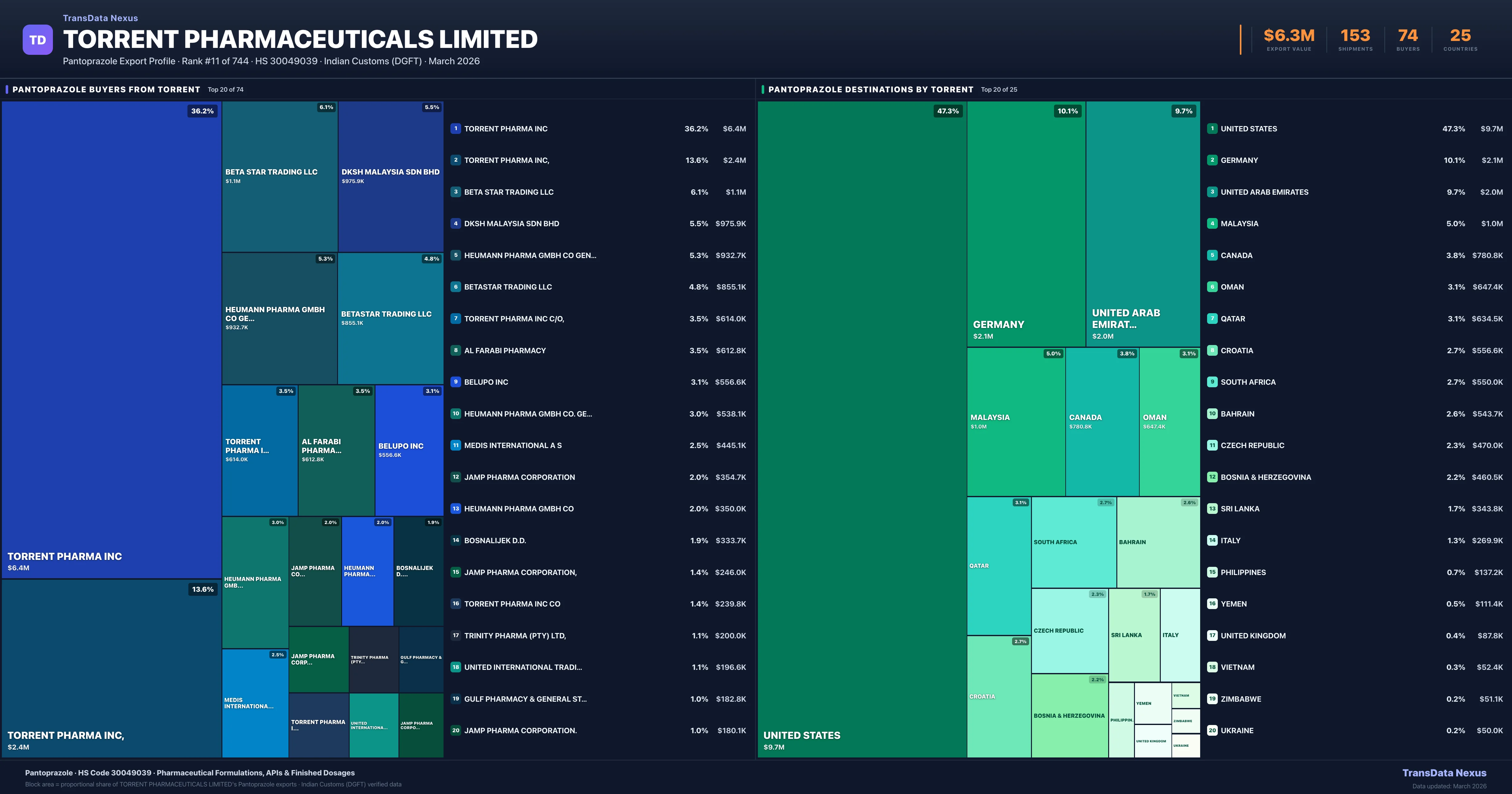 Torrent Pharmaceuticals Limited — Pantoprazole Export Profile: Buyers & Destinations