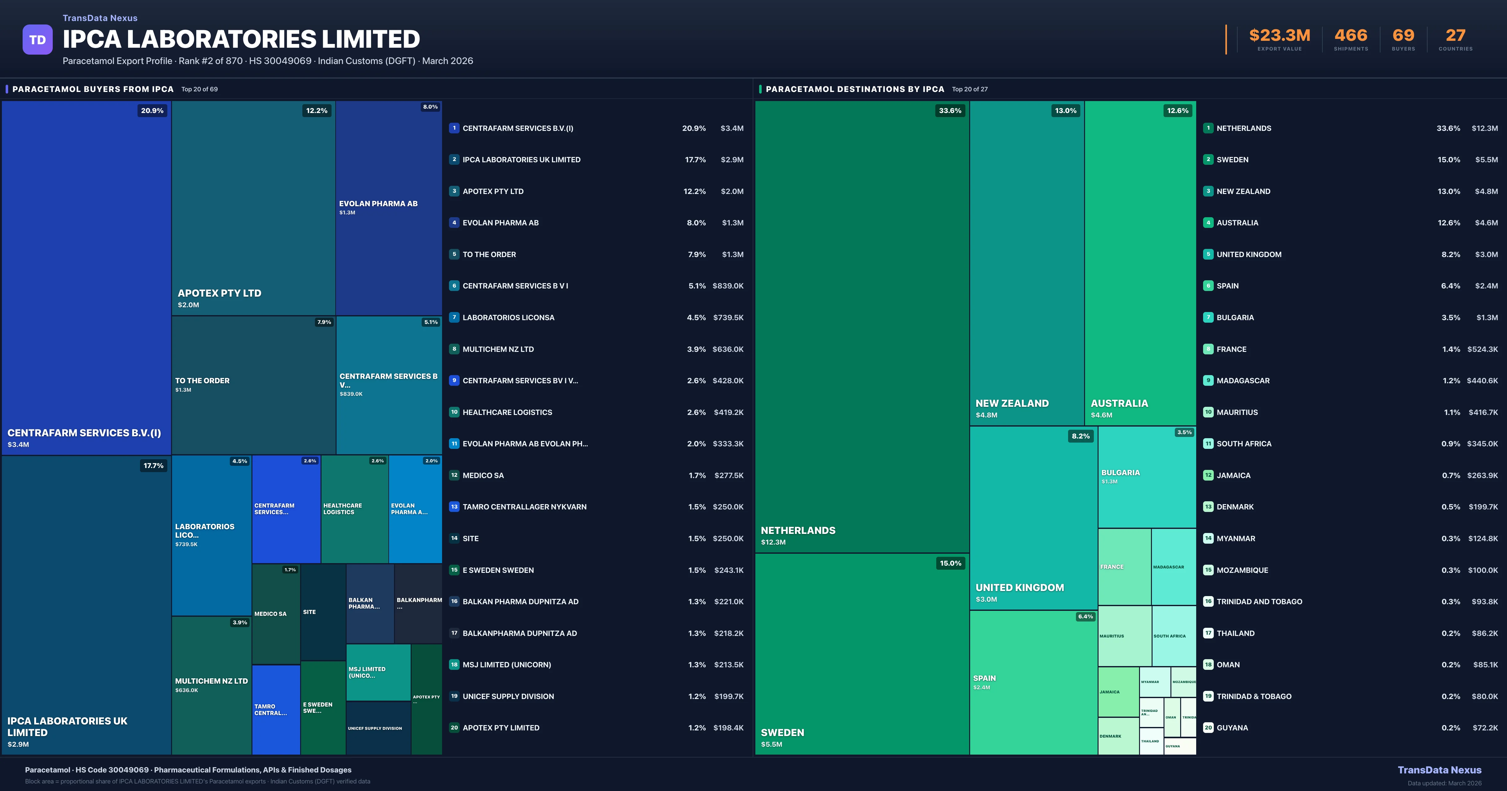 Ipca Laboratories Limited — Paracetamol Export Profile: Buyers & Destinations