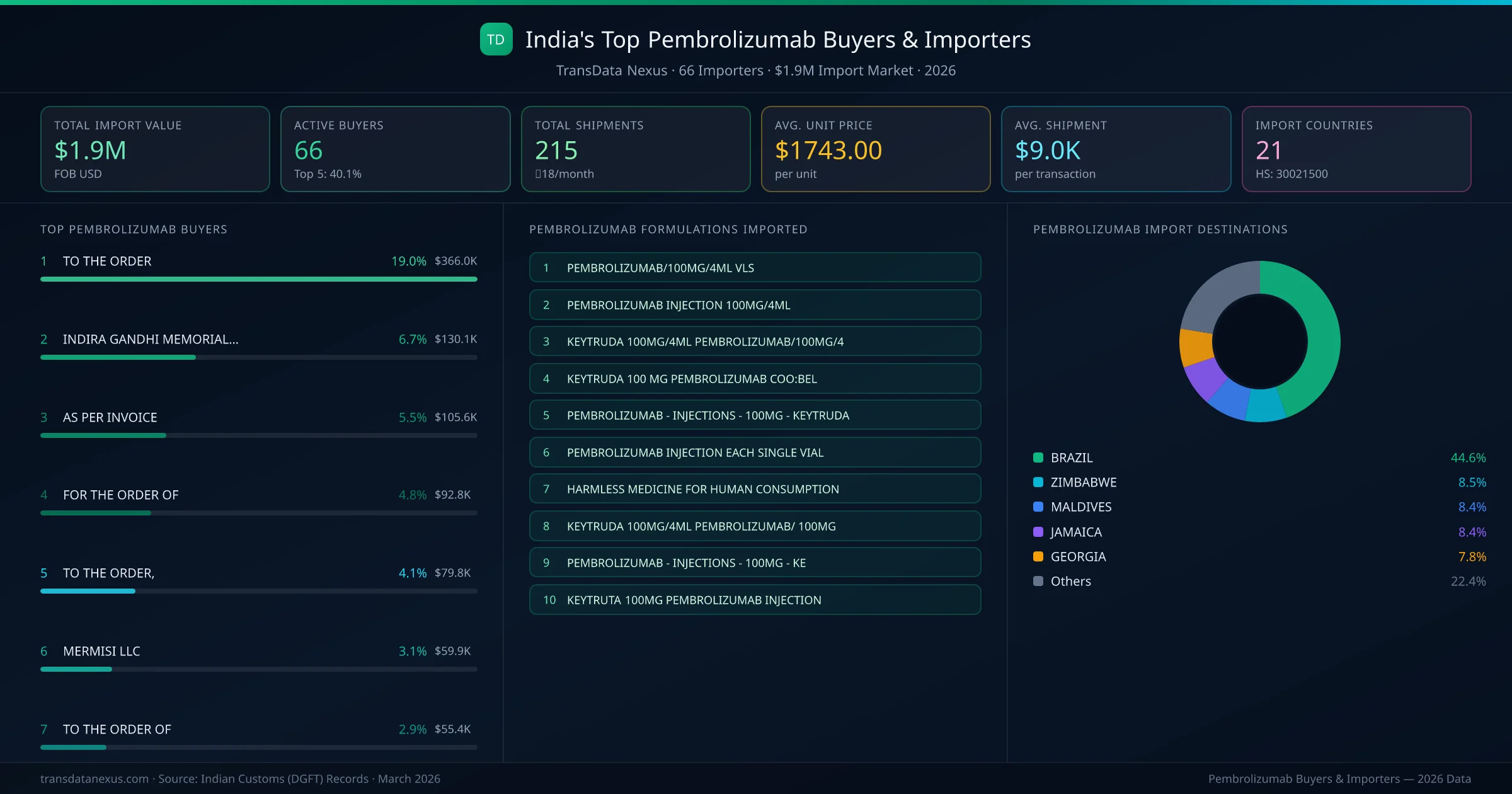 Who Buys Pembrolizumab from India — 66 Importers Behind a $1.9M Market