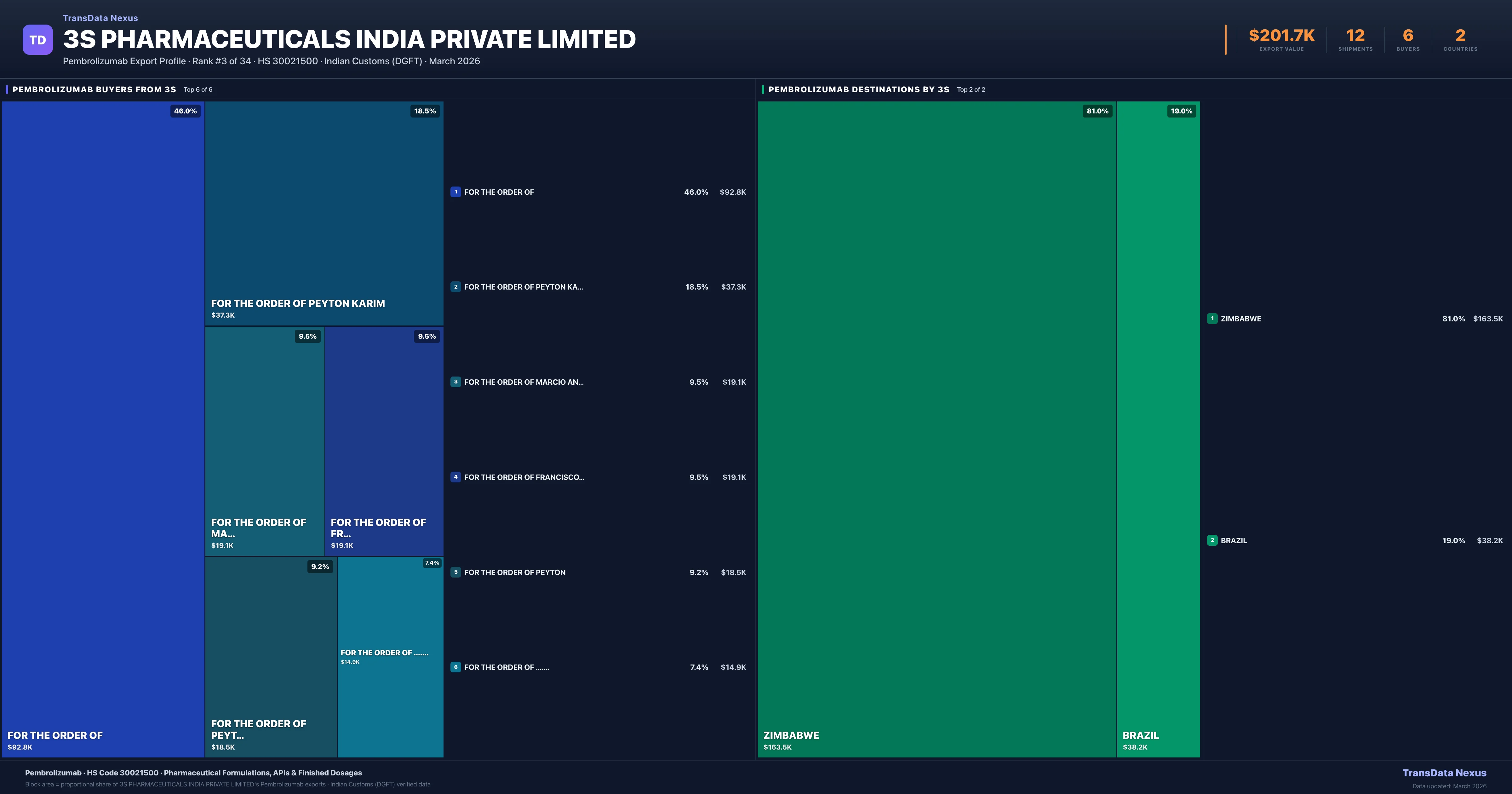 3S Pharmaceuticals India Private Limited — Pembrolizumab Export Profile: Buyers & Destinations