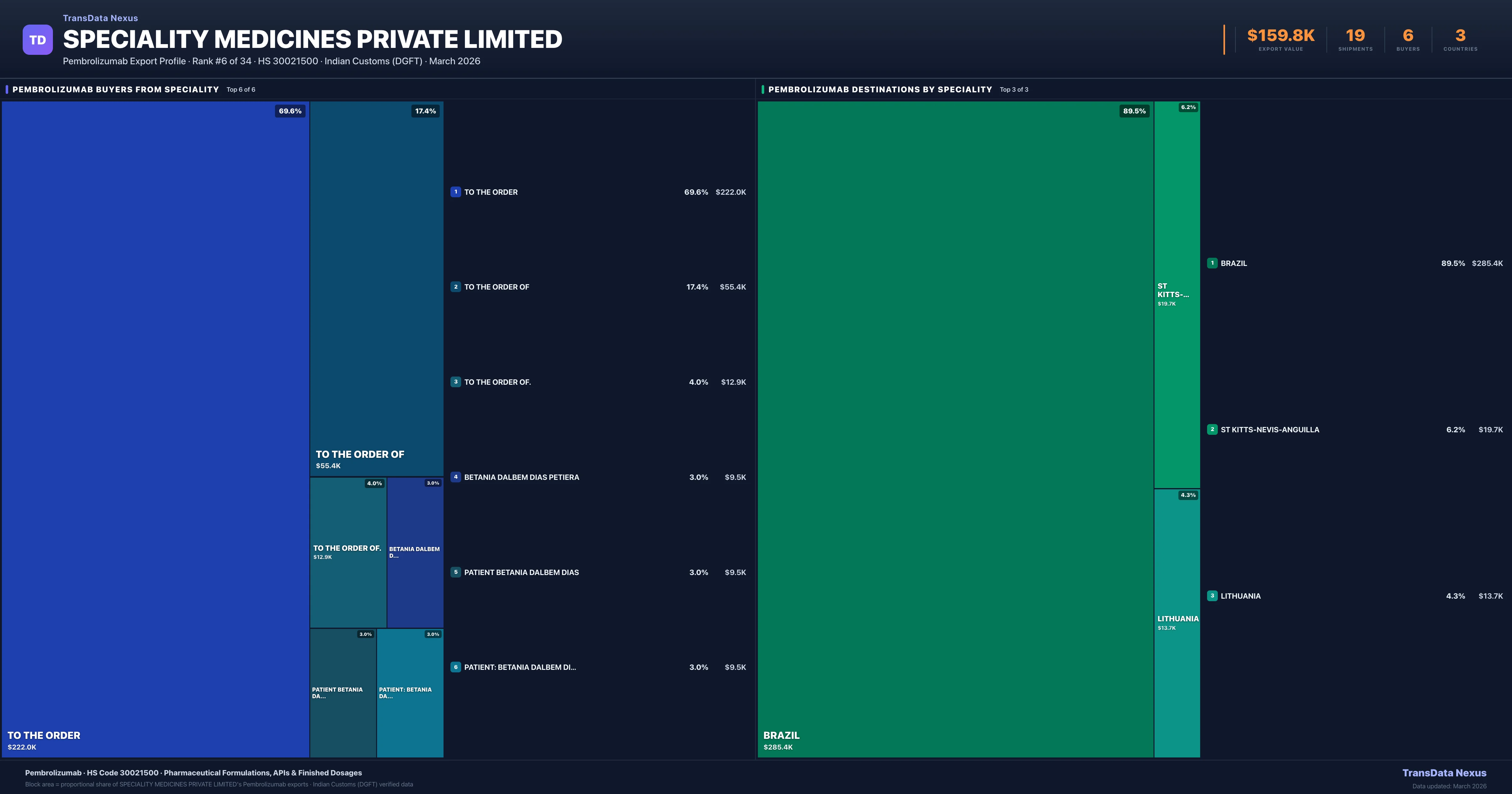 Speciality Medicines Private Limited — Pembrolizumab Export Profile: Buyers & Destinations