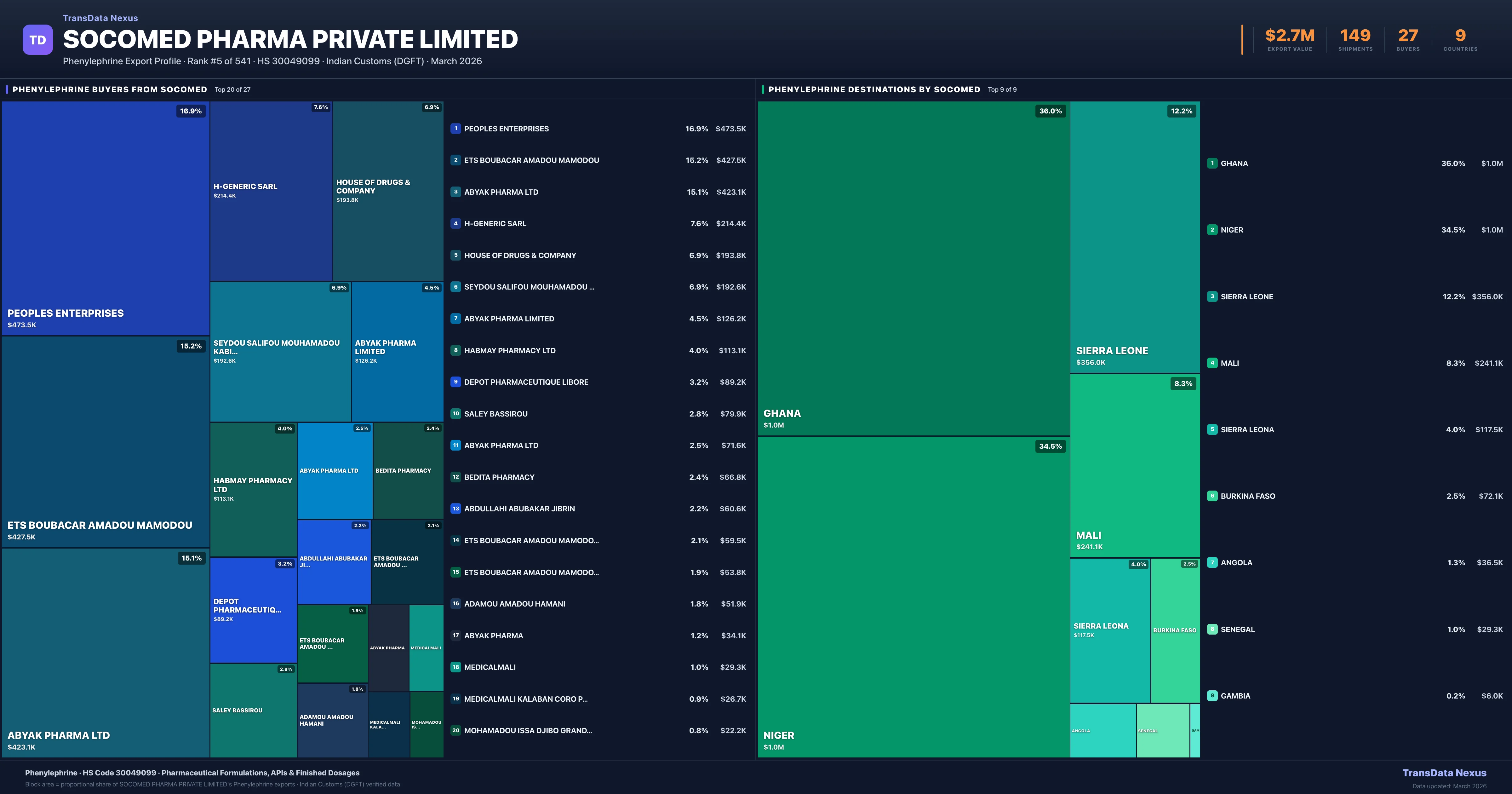Socomed Pharma Private Limited — Phenylephrine Export Profile: Buyers & Destinations