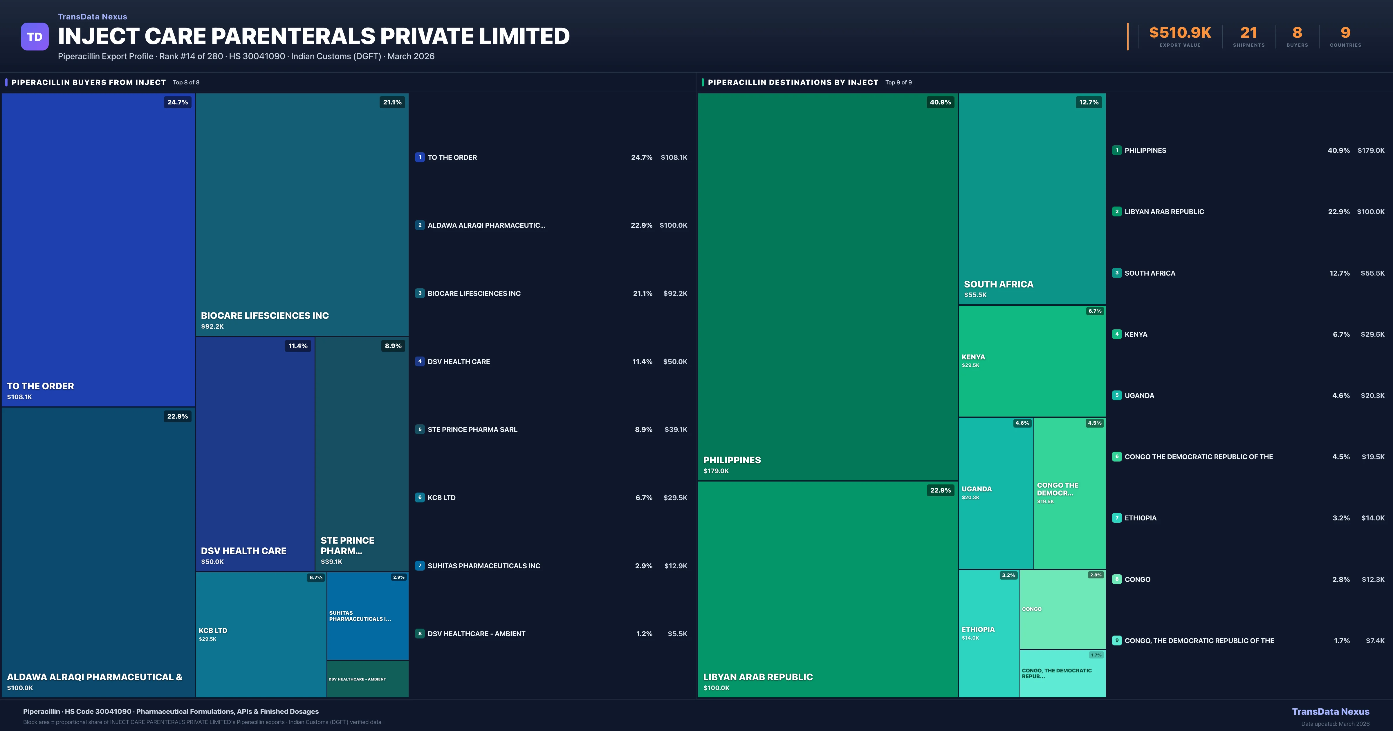 Inject Care Parenterals Private Limited — Piperacillin Export Profile: Buyers & Destinations