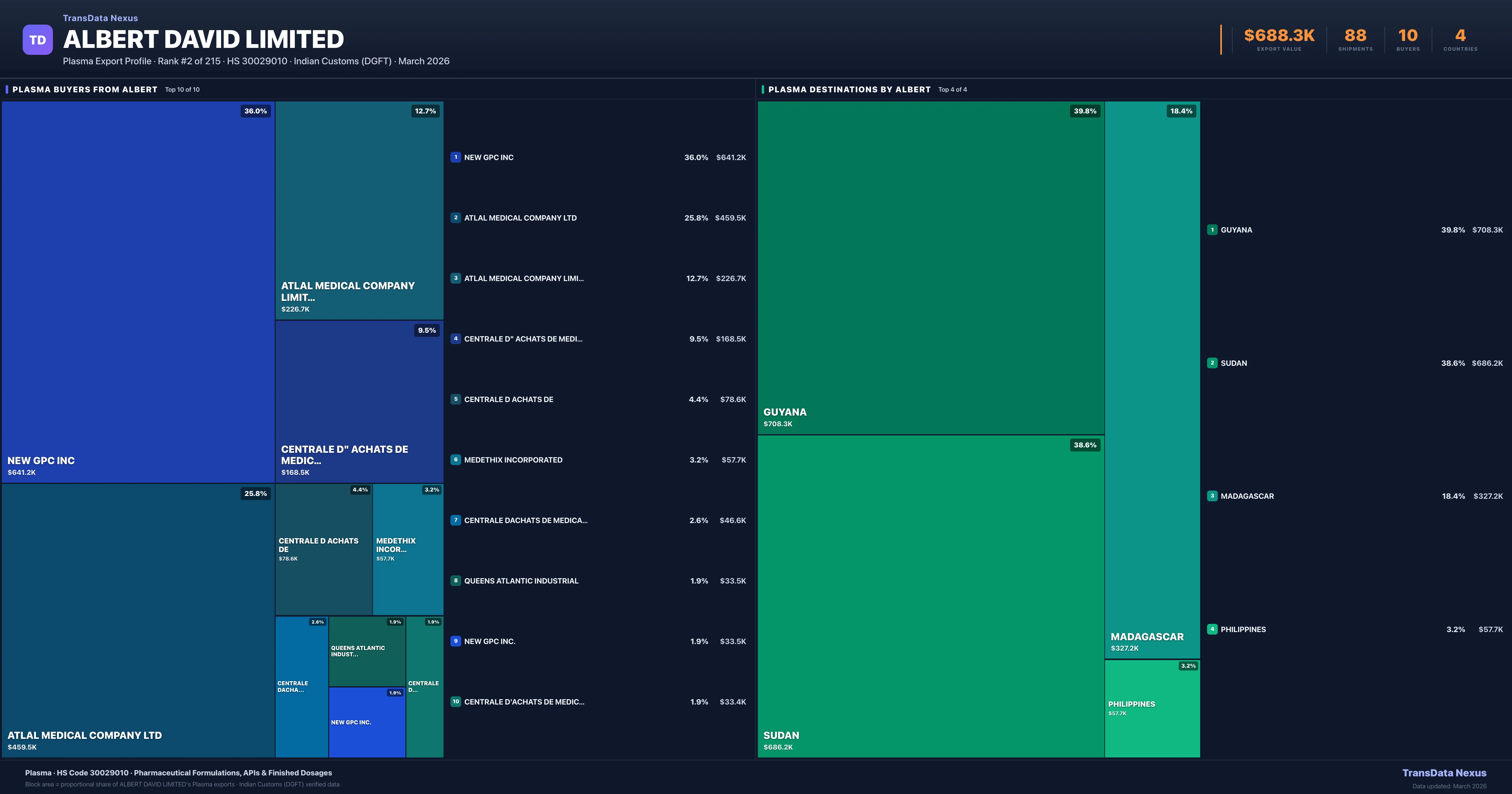 Albert David Limited — Plasma Export Profile: Buyers & Destinations