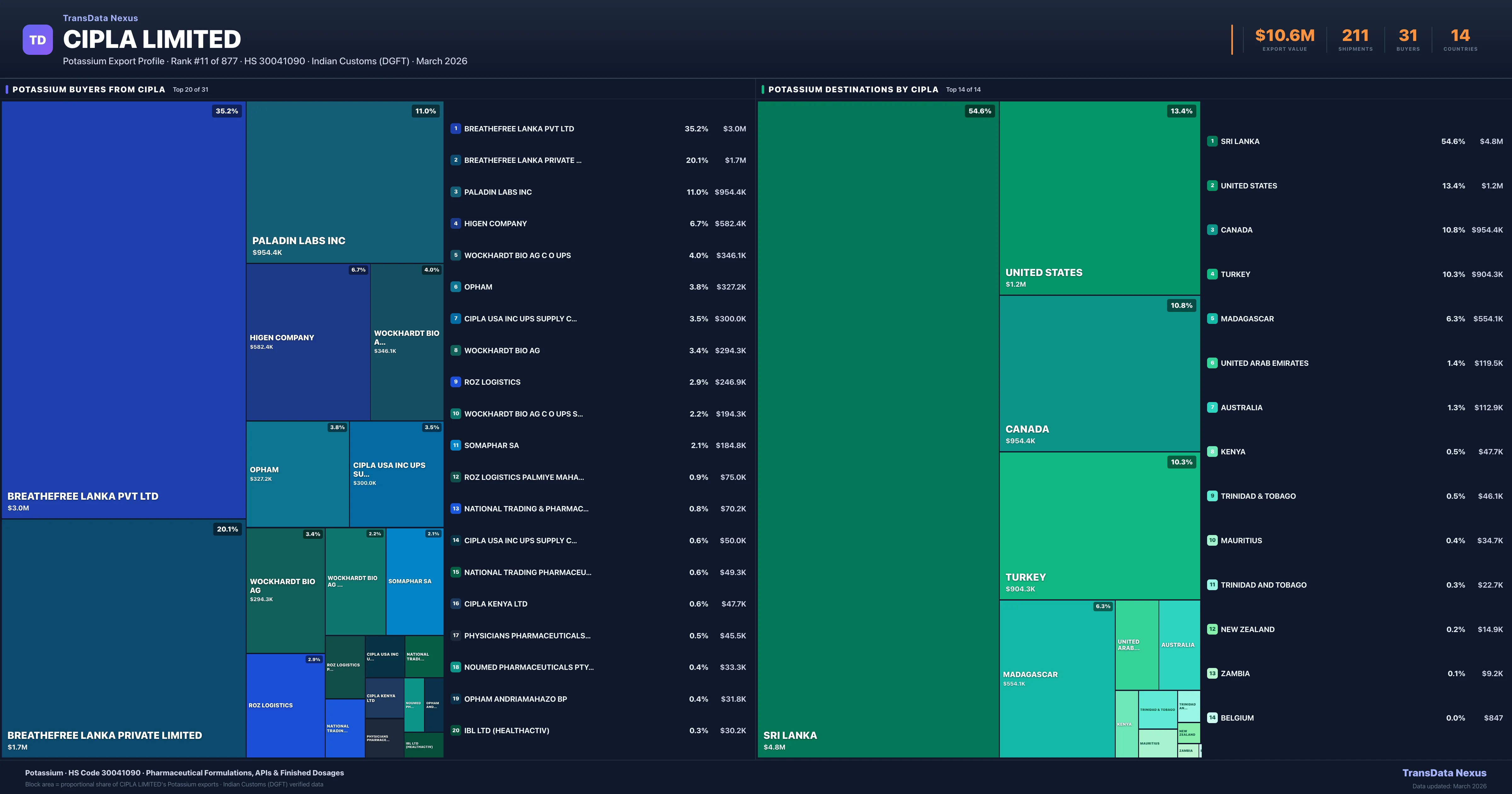 Cipla Limited — Potassium Export Profile: Buyers & Destinations