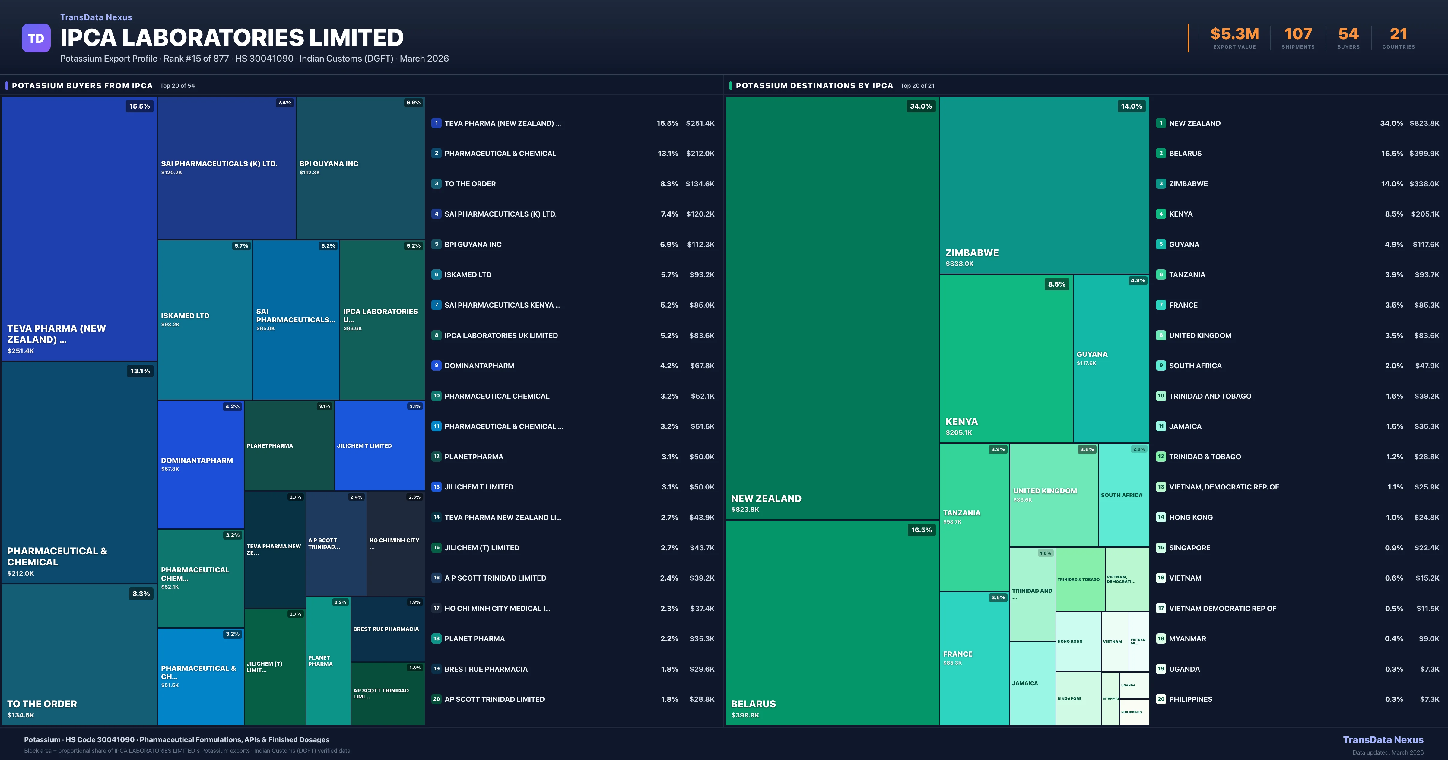 Ipca Laboratories Limited — Potassium Export Profile: Buyers & Destinations
