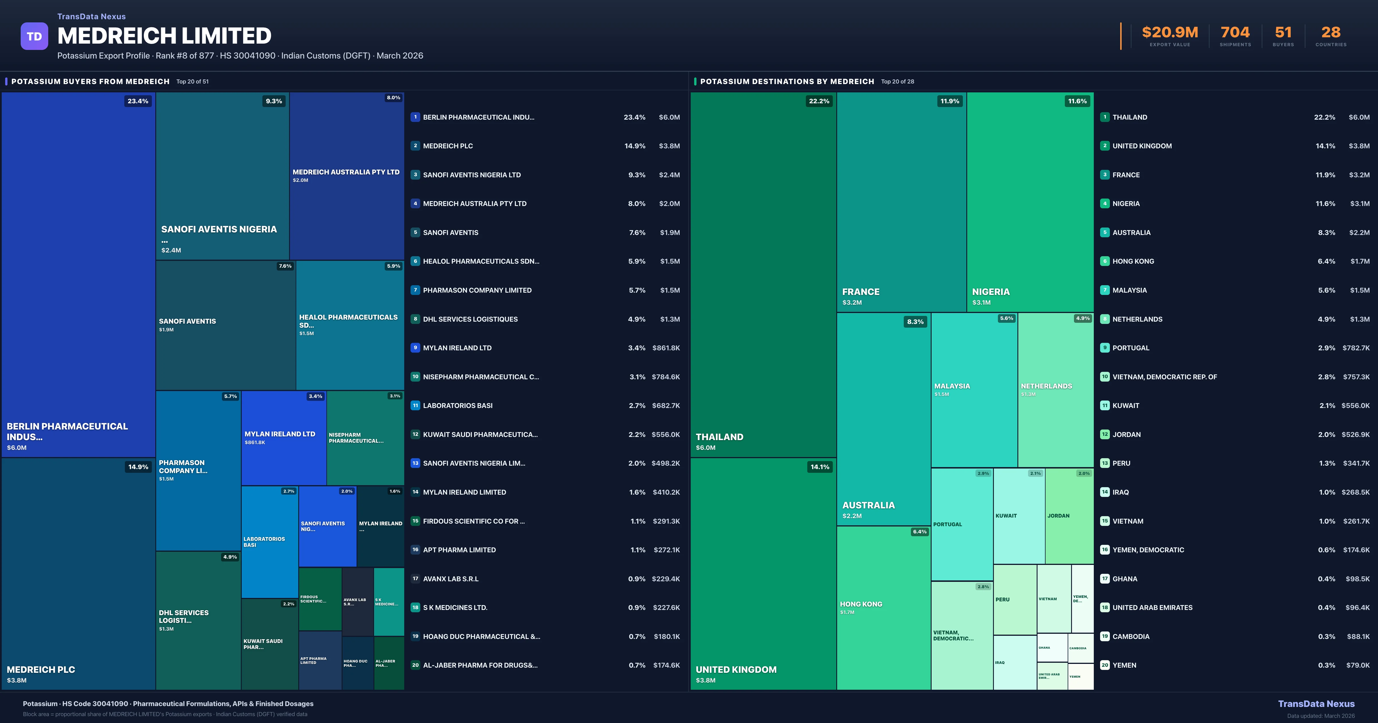 Medreich Limited — Potassium Export Profile: Buyers & Destinations