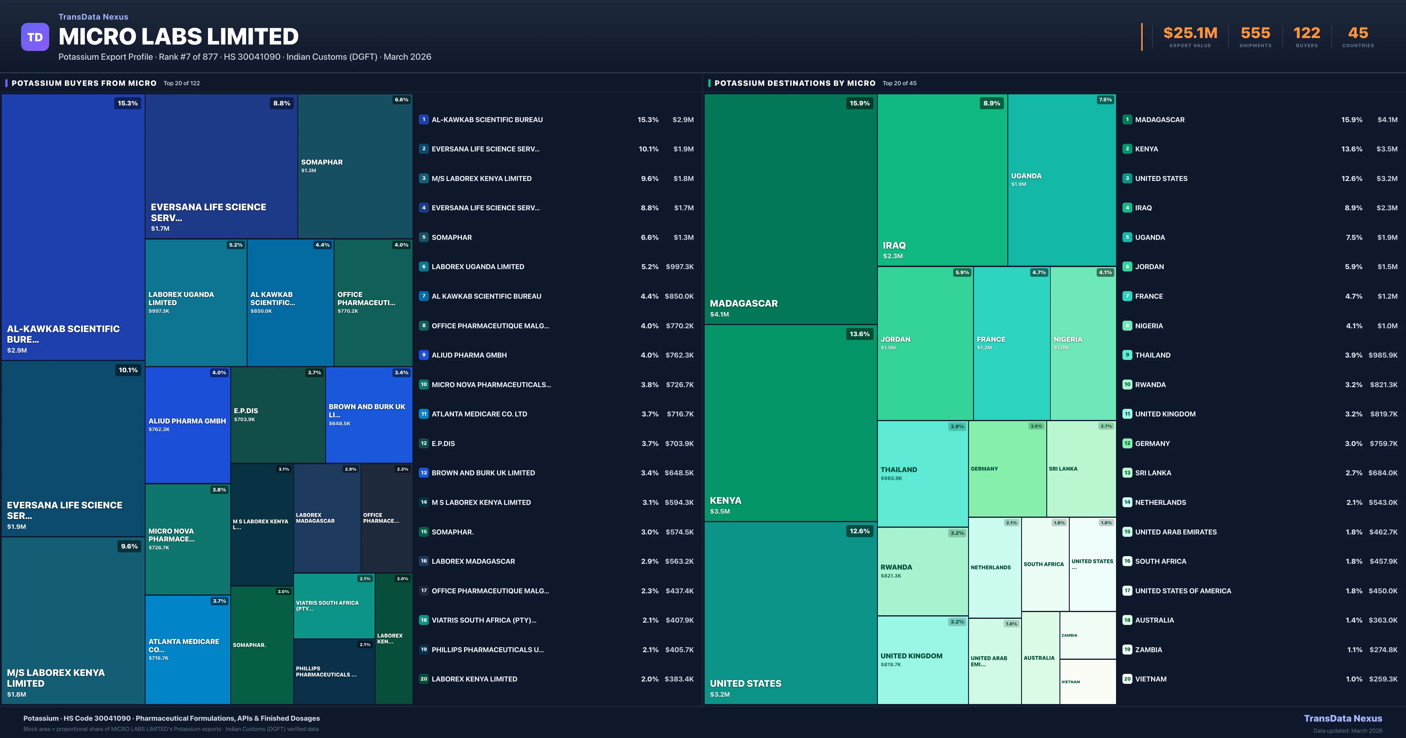 Micro Labs Limited — Potassium Export Profile: Buyers & Destinations