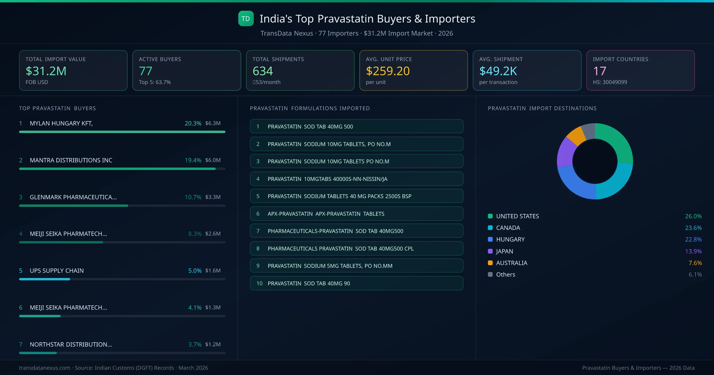 Who Buys Pravastatin from India โ 77 Importers Behind a $31.2M Market