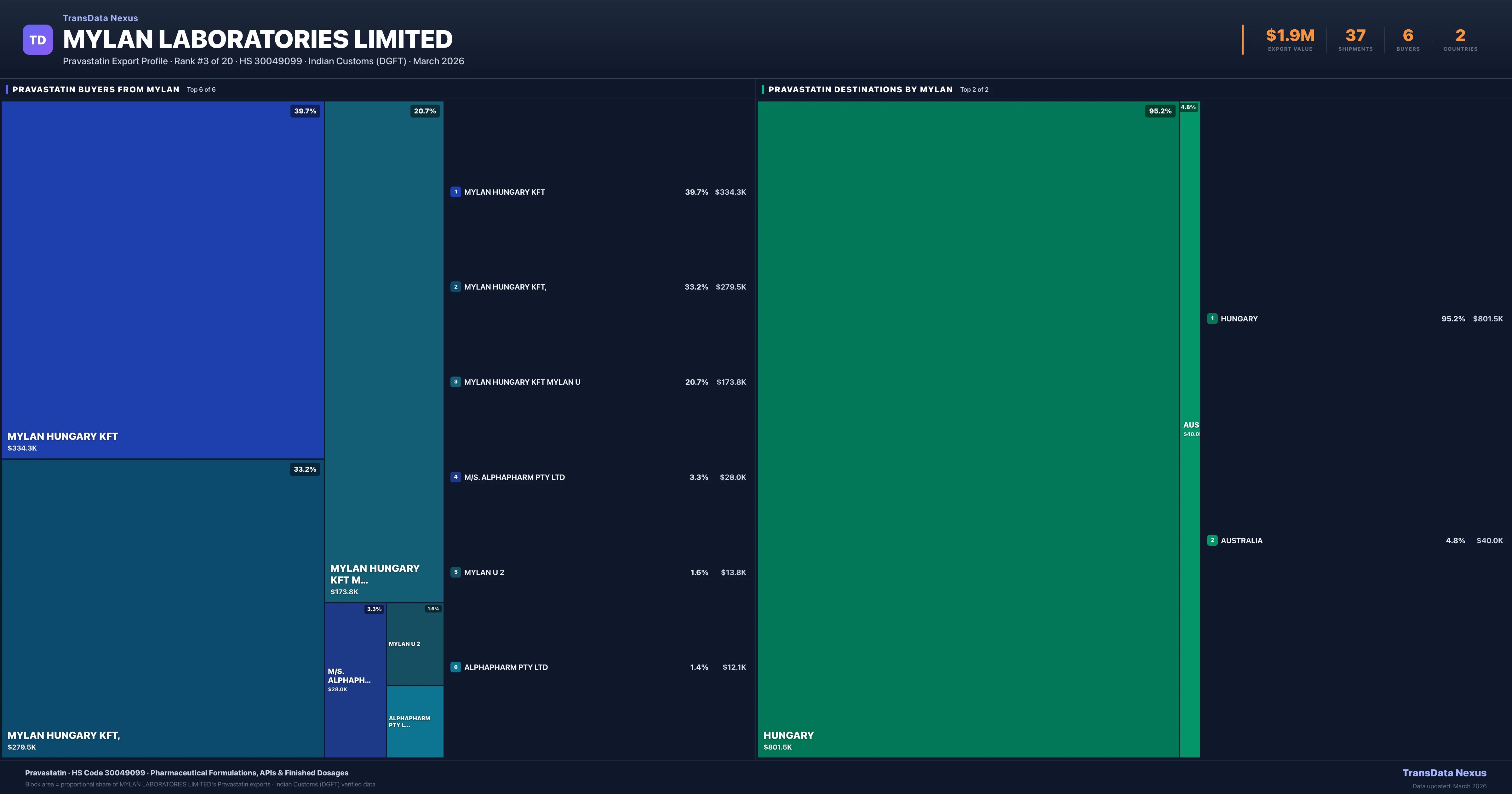 Mylan Laboratories Limited — Pravastatin Export Profile: Buyers & Destinations