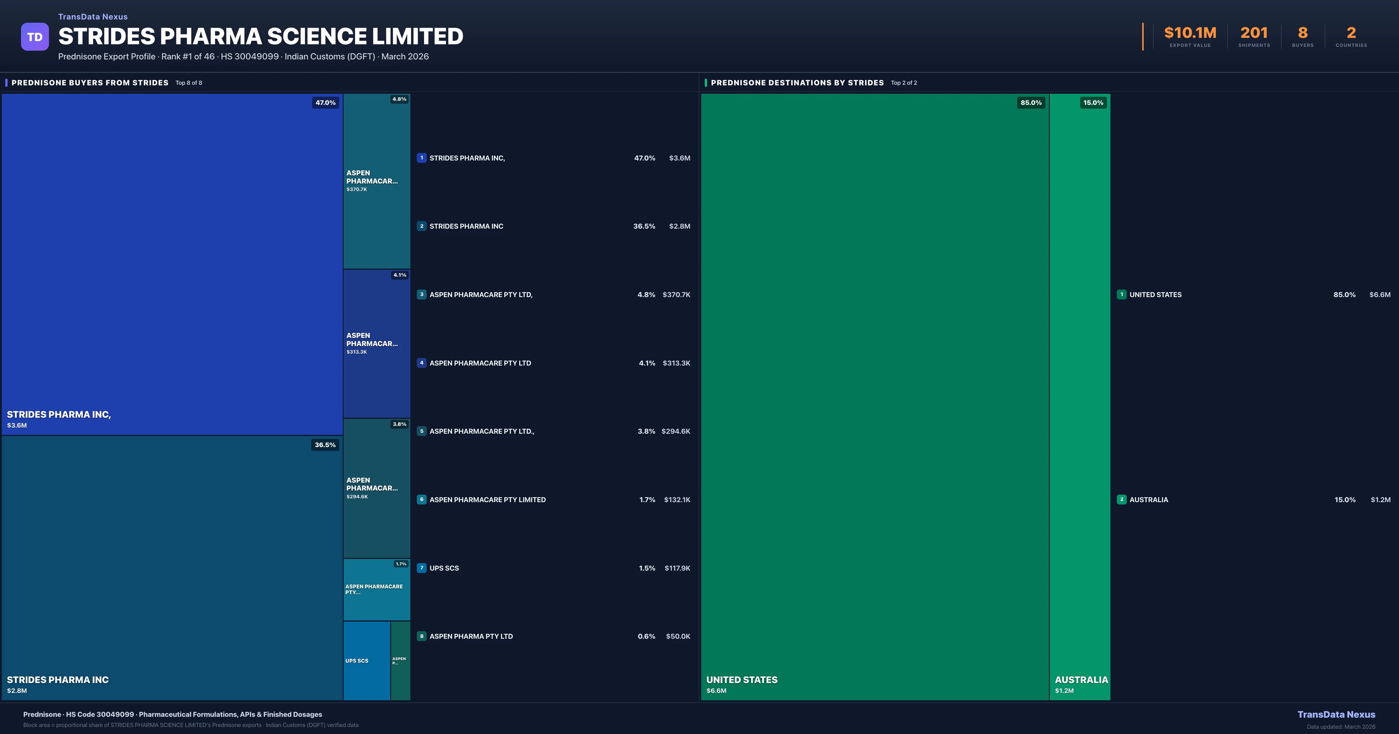 Strides Pharma Science Limited — Prednisone Export Profile: Buyers & Destinations