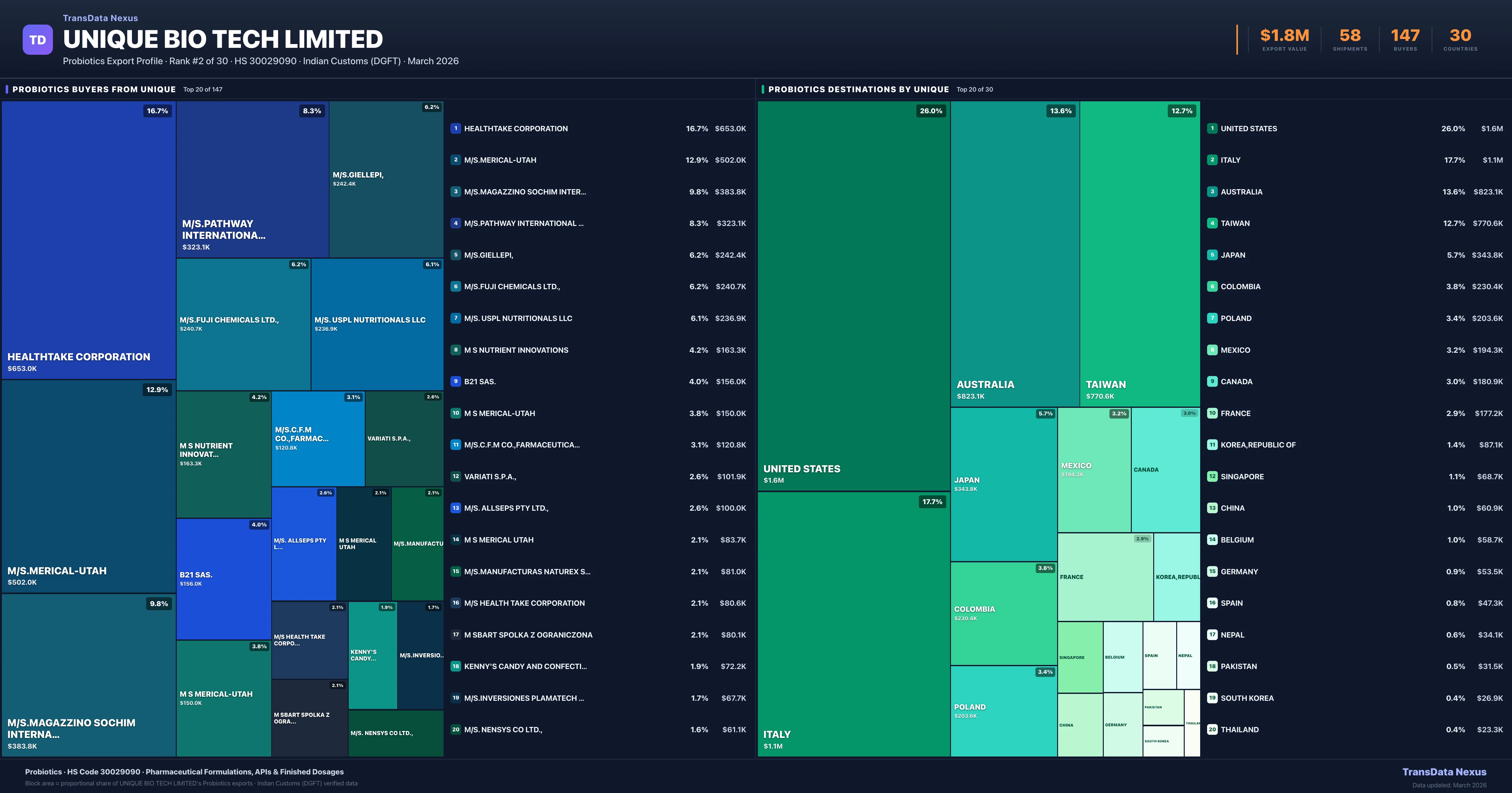 Unique Bio Tech Limited — Probiotics Export Profile: Buyers & Destinations