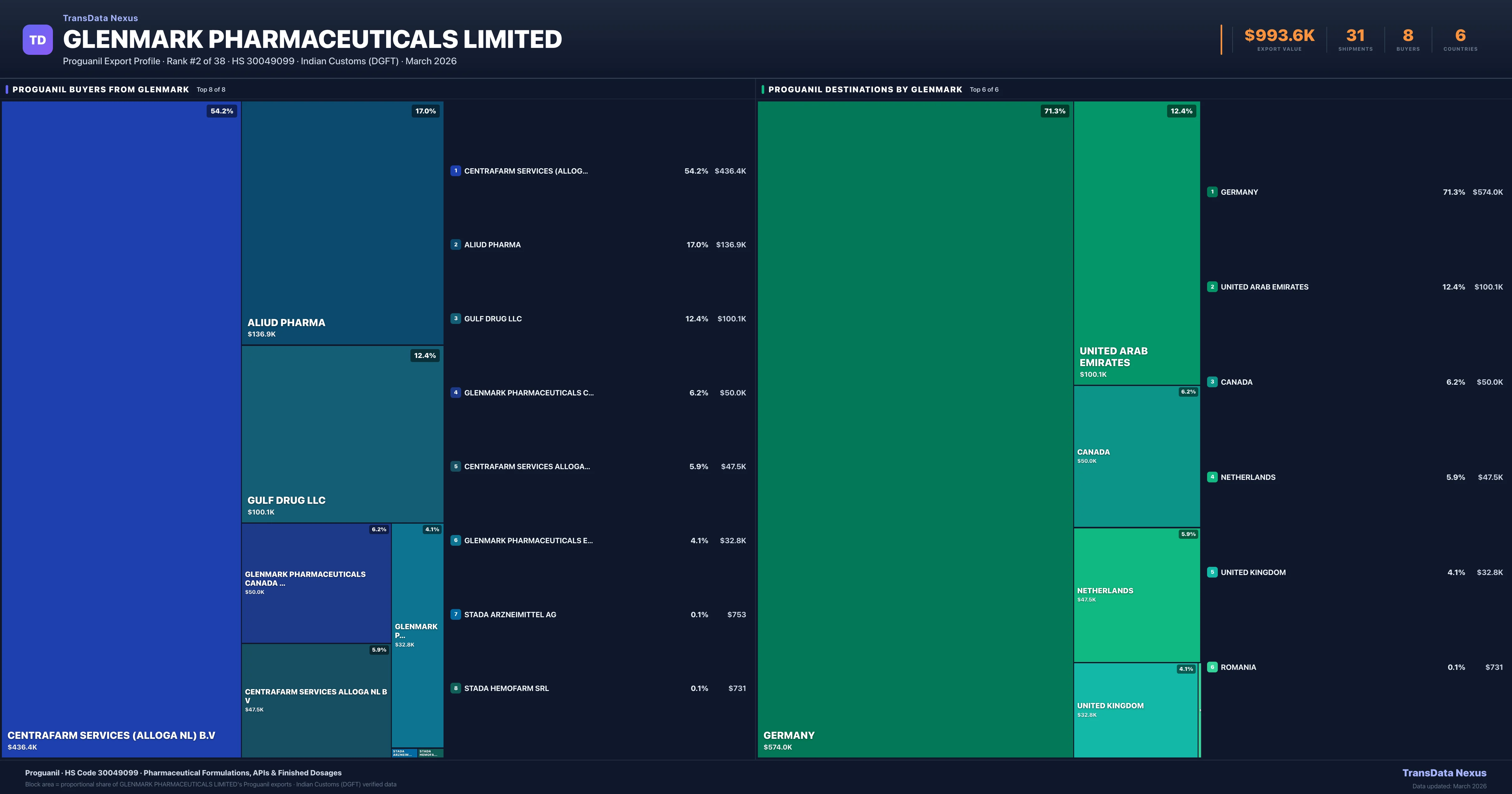 Glenmark Pharmaceuticals Limited — Proguanil Export Profile: Buyers & Destinations