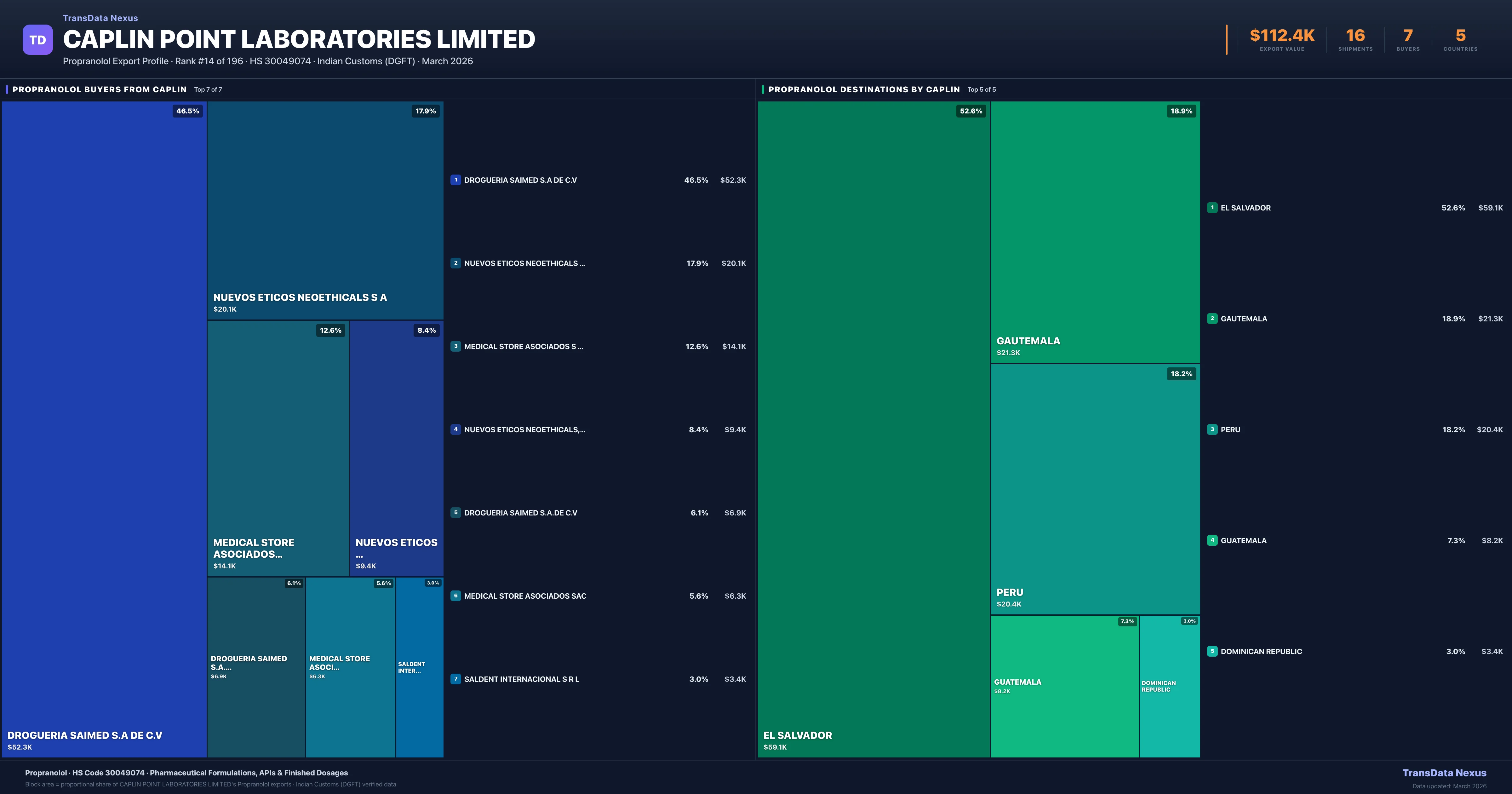 Caplin Point Laboratories Limited — Propranolol Export Profile: Buyers & Destinations