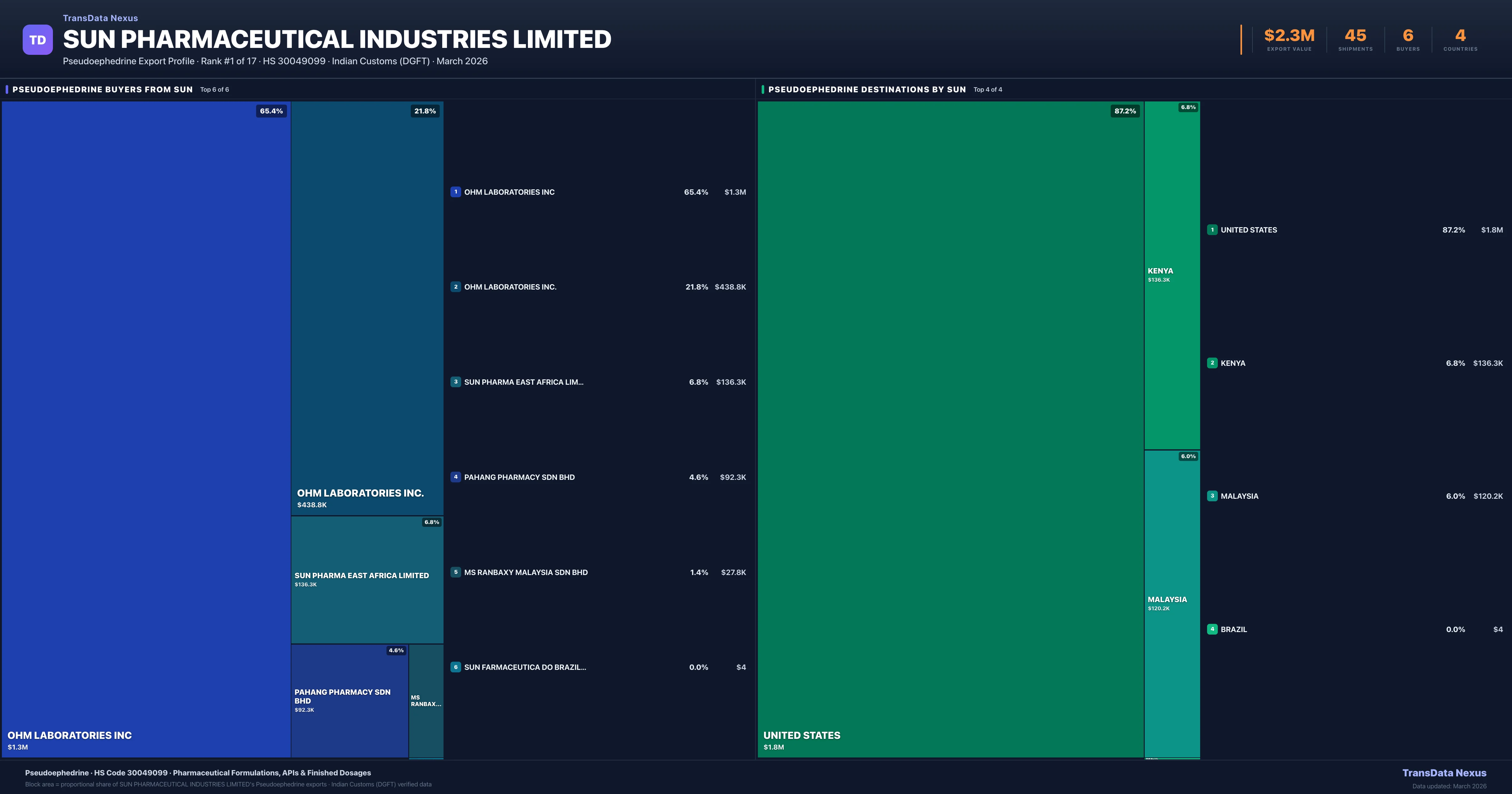 SUN Pharmaceutical Industries Limited — Pseudoephedrine Export Profile: Buyers & Destinations