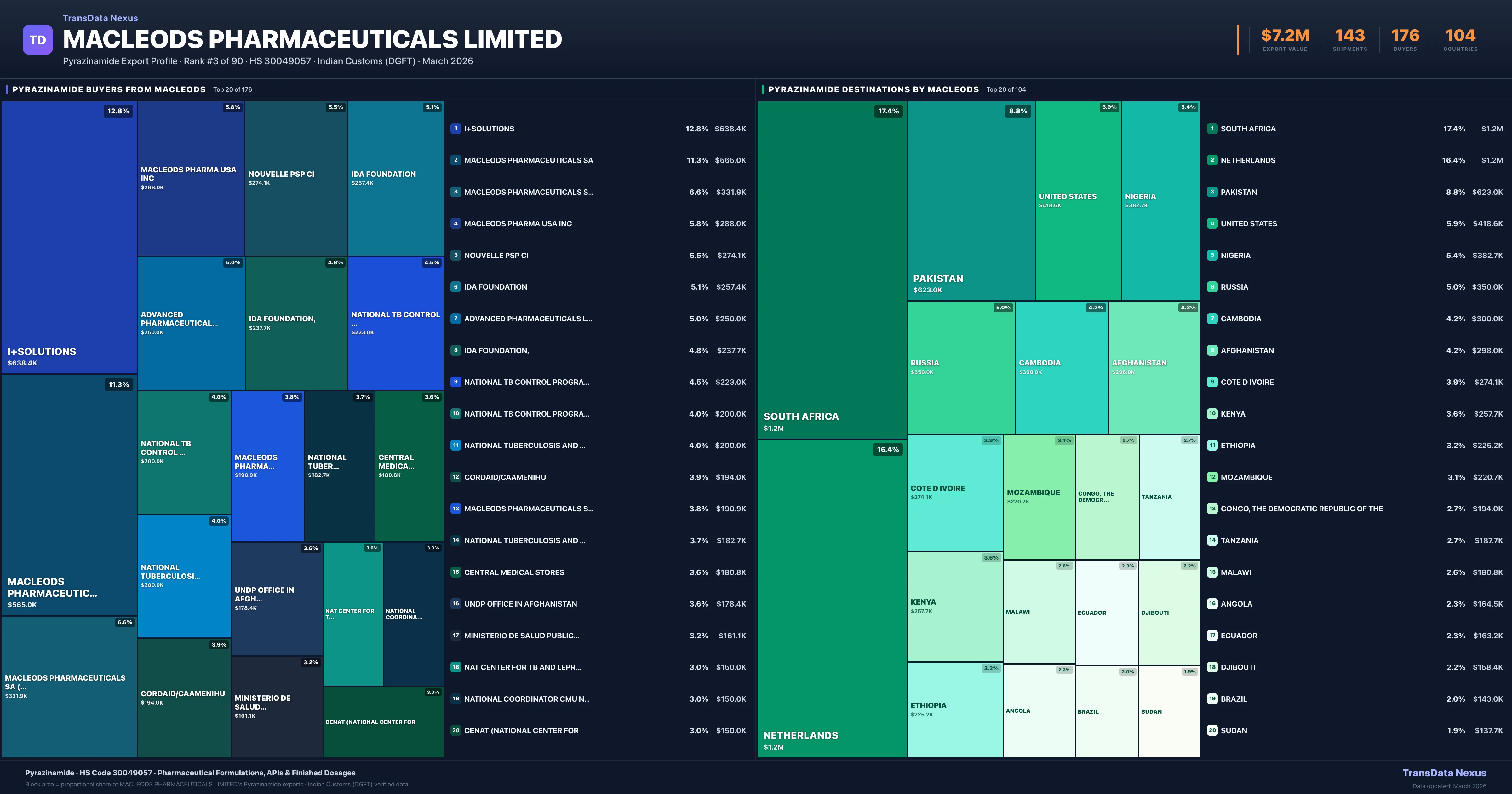 Macleods Pharmaceuticals Limited — Pyrazinamide Export Profile: Buyers & Destinations